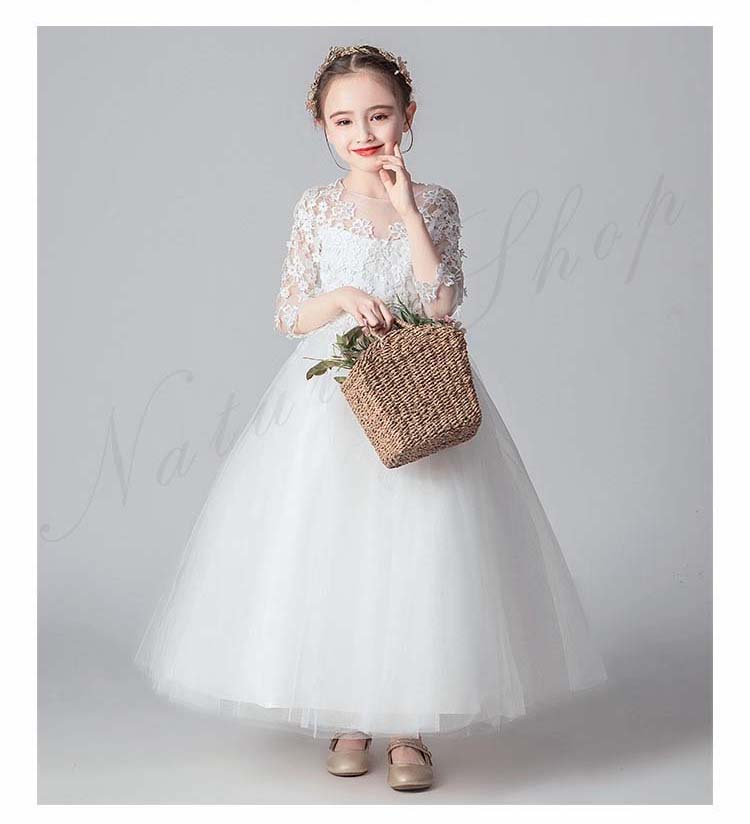 子供ドレス 子供 ドレス 発表会 結婚式 姫 ワンピース シンプル 女の子 長袖 チュールスカート キッズ ロング 姫 フラワーガール ブライズメイド チュール ワンピース