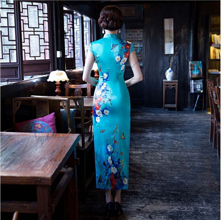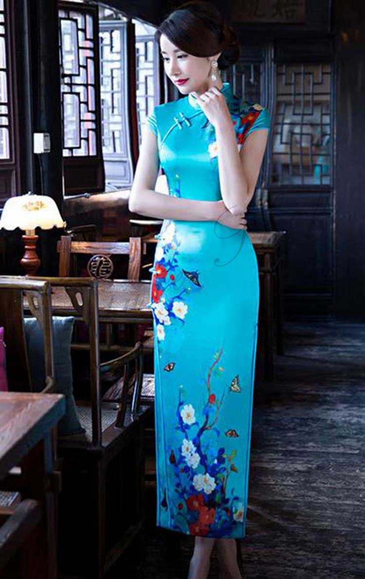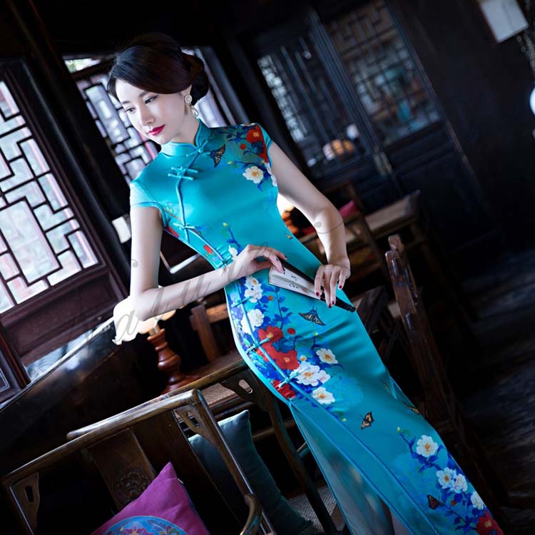 ステージ撮影衣装 青 中国風フォマールドレス 中華古典舞台衣装 ロング丈チャイナドレス 結婚式パーティーお呼ばれドレス 唐装漢服 クラブママドレス 演出ドレス
