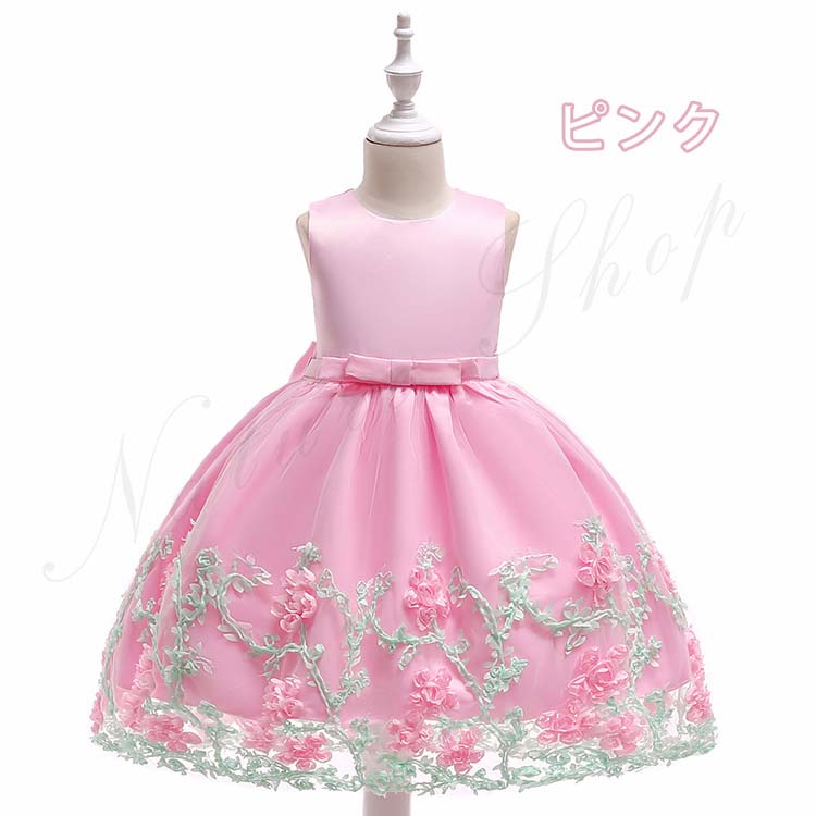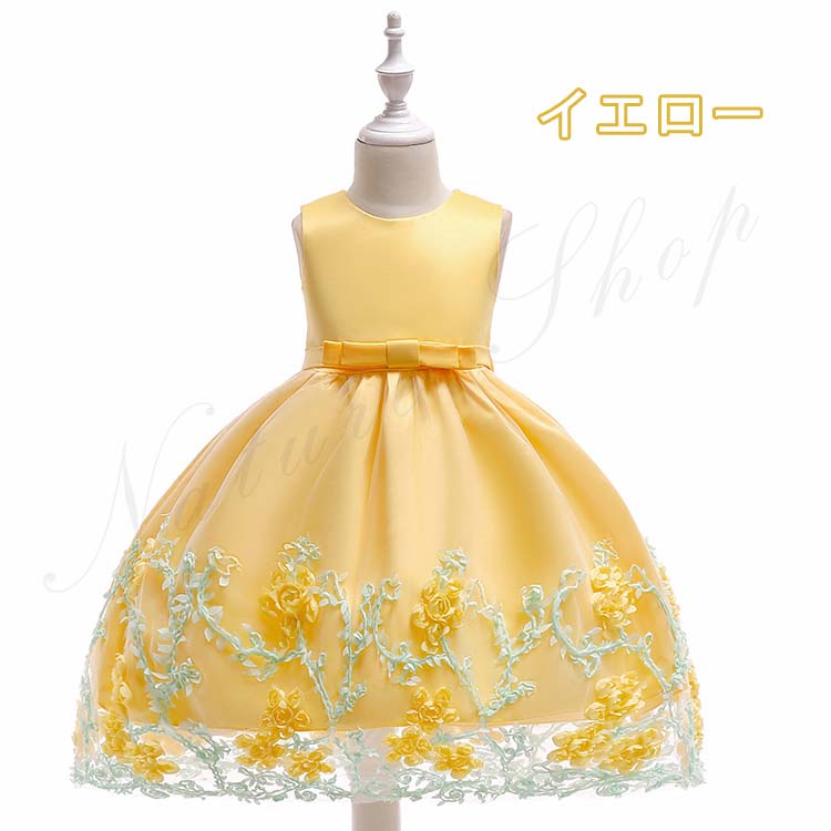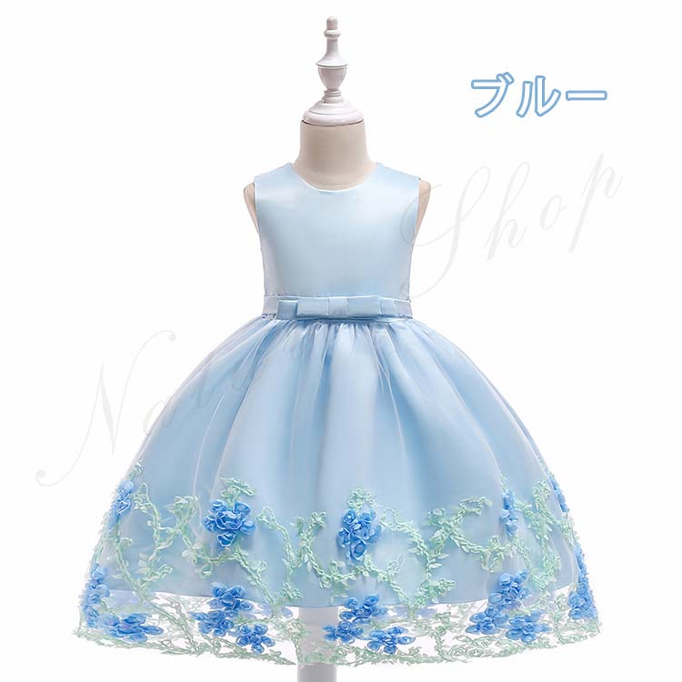 ドレス 子供 ピアノ 発表会 コンクール 紗 袖なし ノースリーブ 花 飾り 刺繍 綿混 子供 ドレス 発表会 ロング 4colors ジュニアドレス 150 チュールスカート キッズ