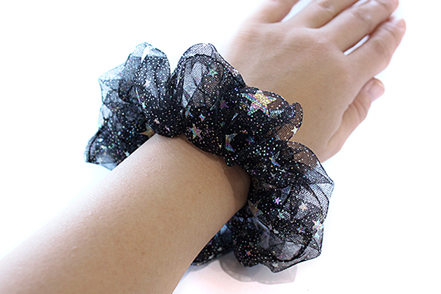 Silverオーロラ星柄ブラックチュールデザイン キッズ ヘアゴム 子供 髪留め ヘアアクセサリー シュシュ ゆめかわ 髪飾り 星