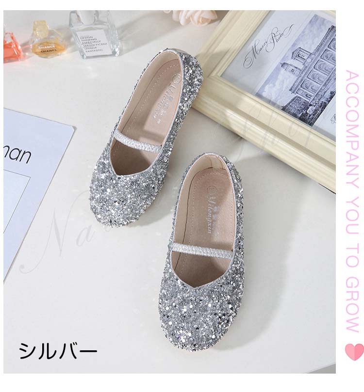 シューズ 発表会 柔らかい キッズ ローファー スパンコール 飾り キラキラ スリッポン 子供 フォーマル 女の子 靴 おしゃれ 姫 プリンセス 2色選べる バレェ ラテン ダンス