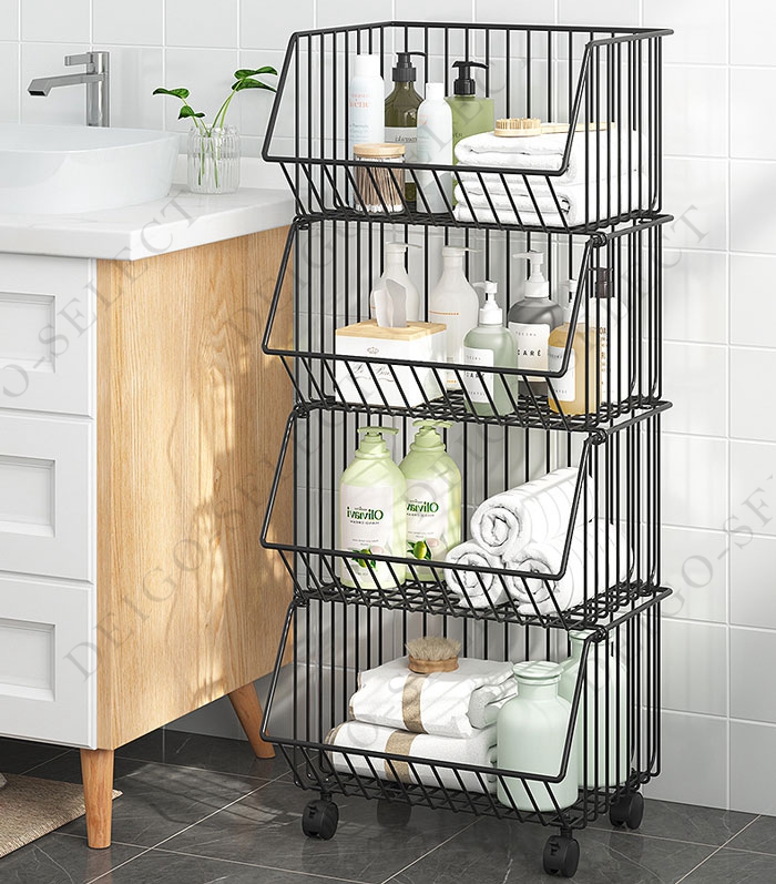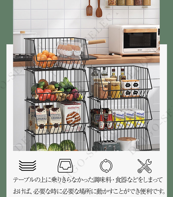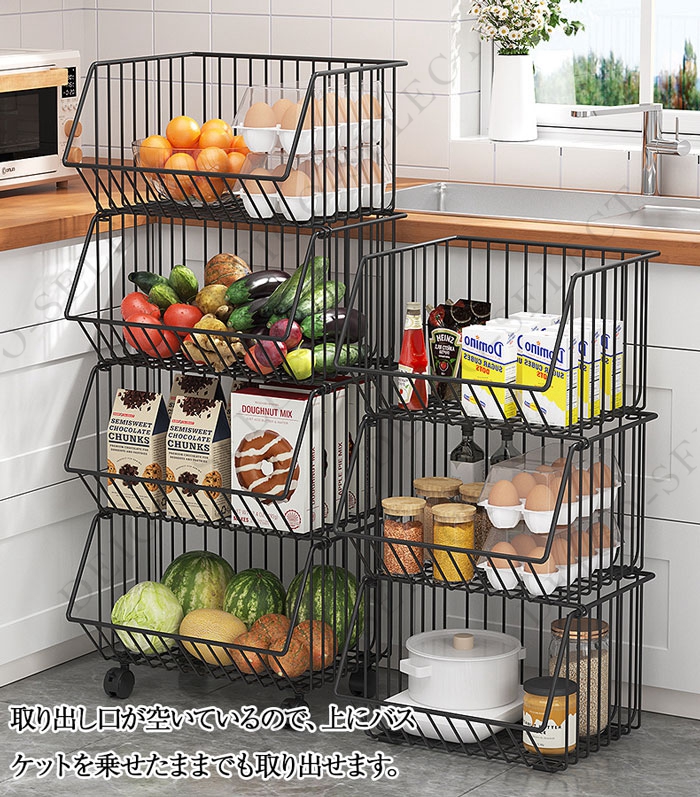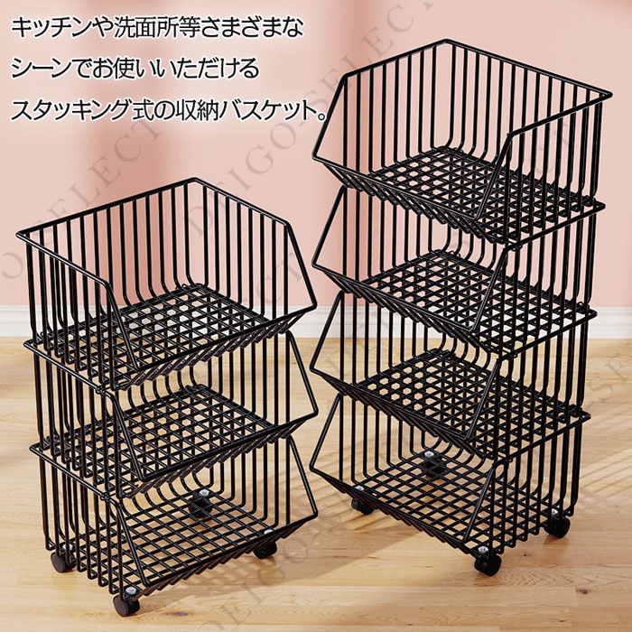 商品詳細 キッチンや洗面所等さまざまなシーンでお使いいただけるスタッキング式の収納バスケット。