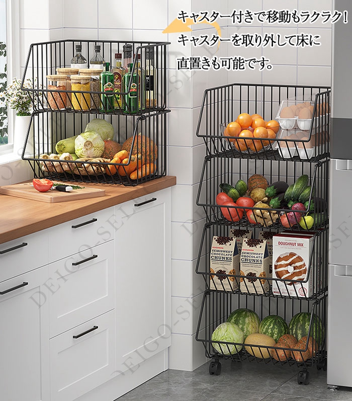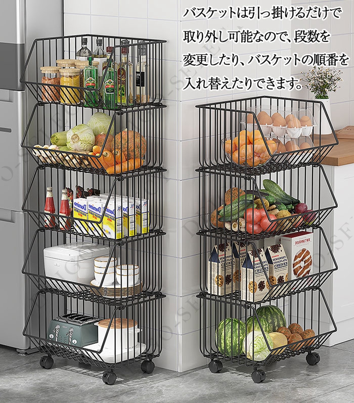 バスケットは引っ掛けるだけで取り外し可能なので、段数を変更したり、バスケットの順番を入れ替えたりできます。