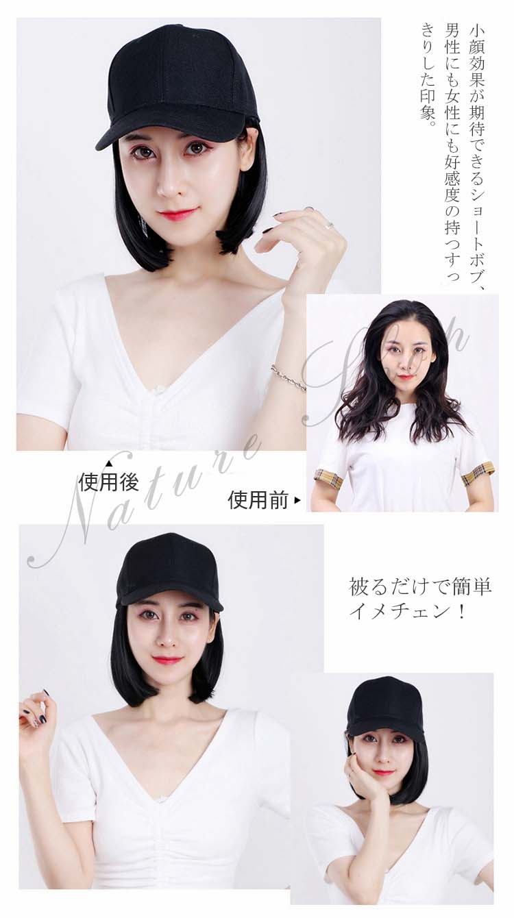 ウィッグ 帽子付き 自然 ショート 髪付き帽子 ウィッグ ウィッグ 帽子 髪付きキャップ ウィッグ付きキャップ 帽子ウィッグ レディース フェミニン アクティブ 可愛い 医療用帽子