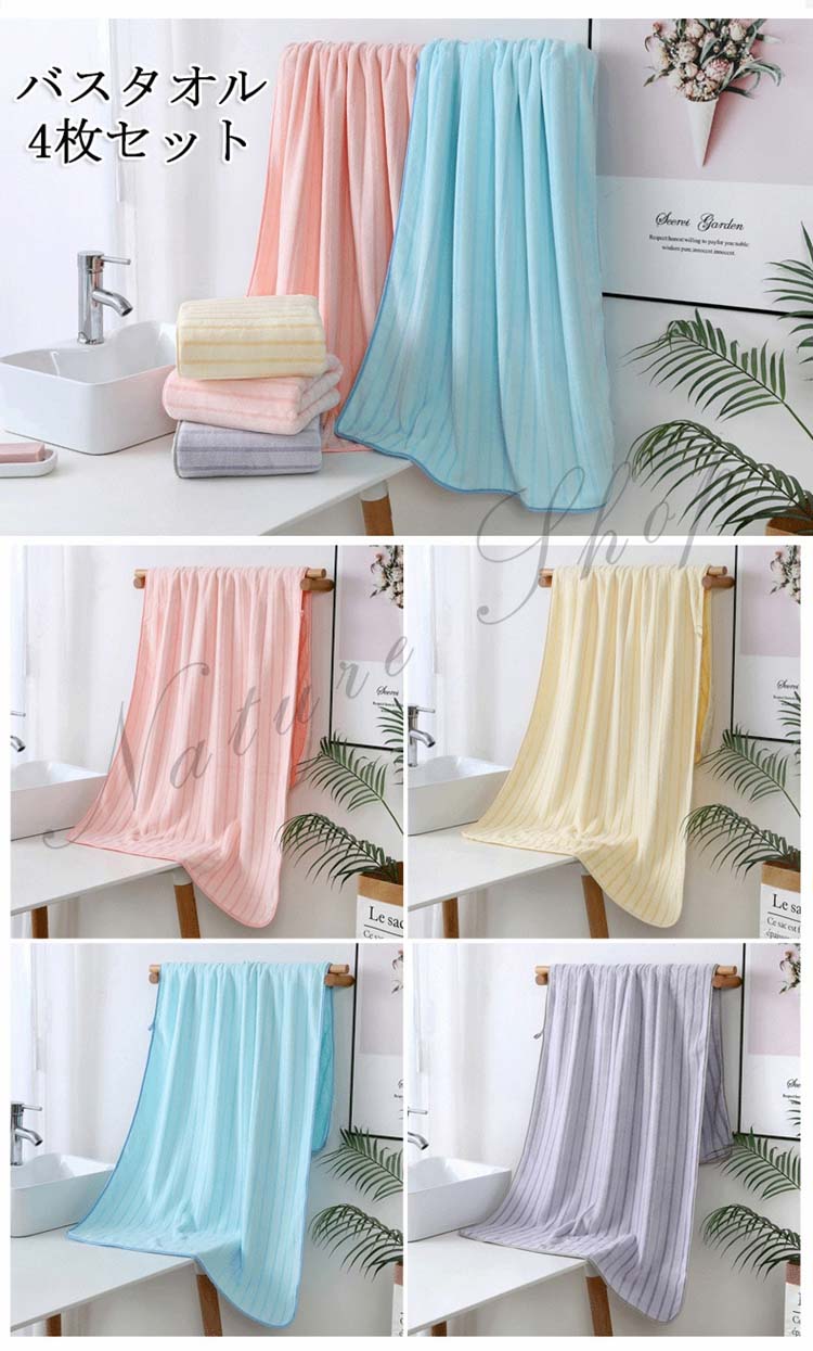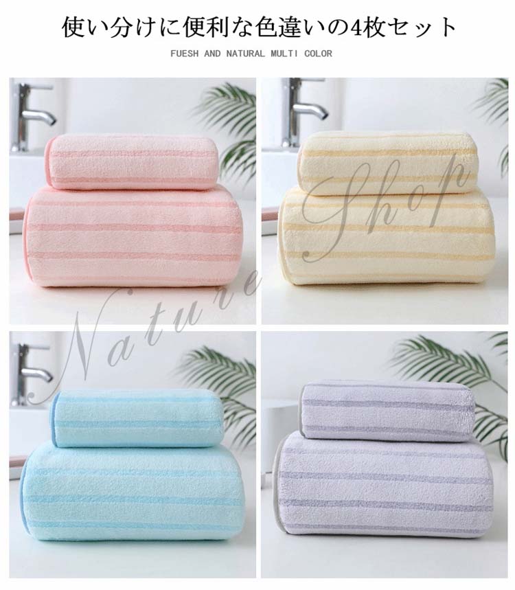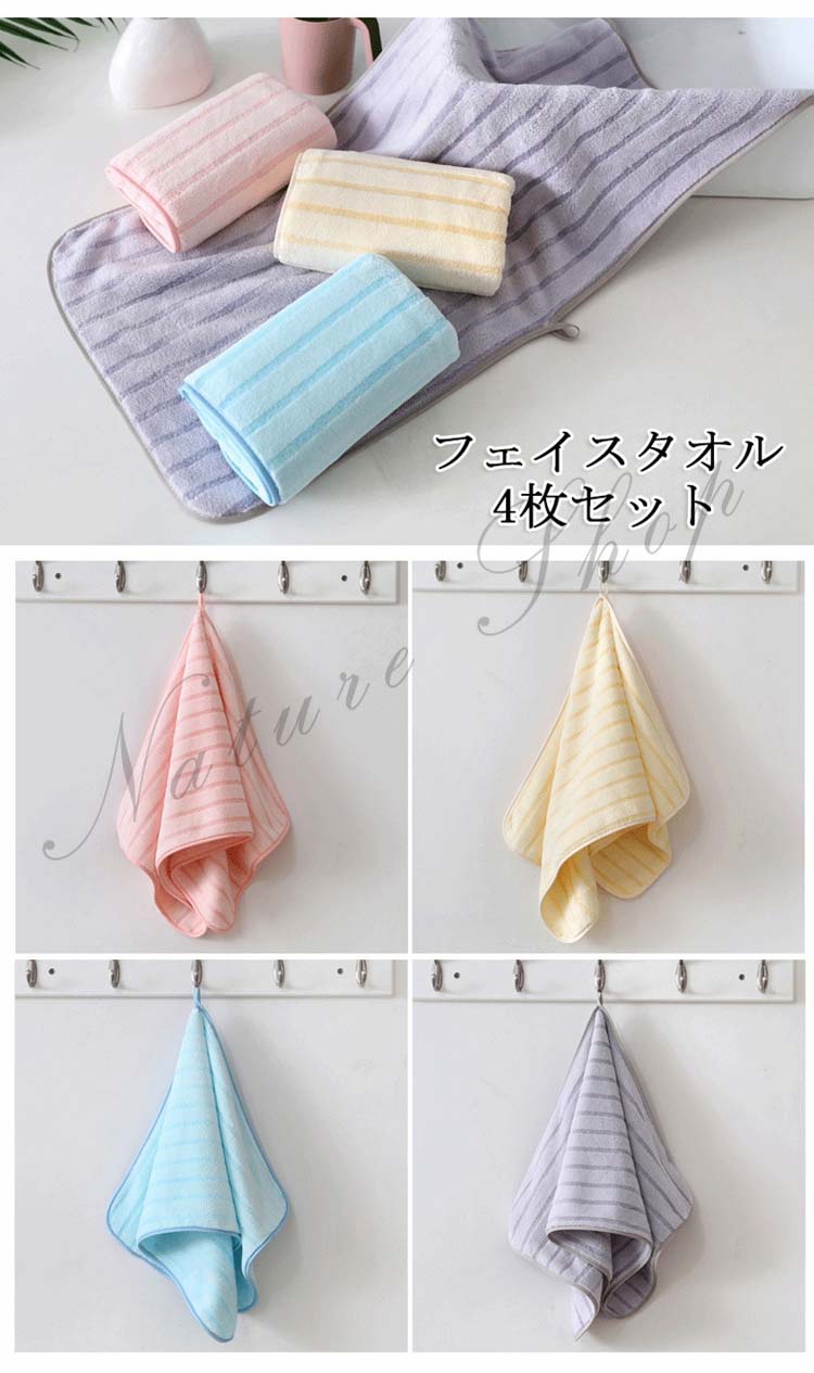 フェイスタオル タオル しっかり吸水 4枚入セット セットアップ ホテル ソフト 柔らかい 肌に優しい 厚め 吸水速乾 ホテルタオル ホテル仕様 贈り物 ピンク イエロー