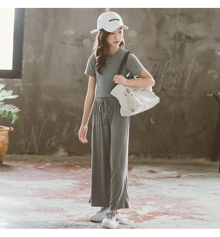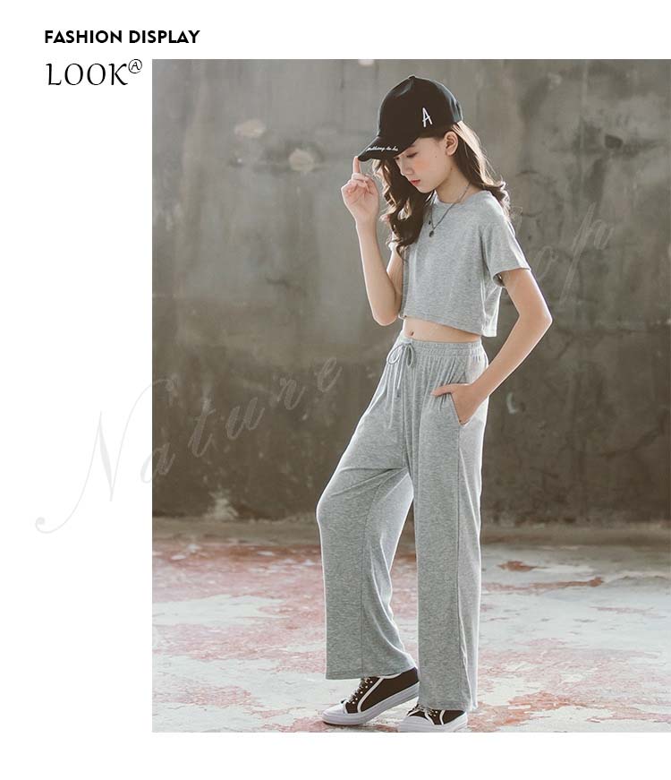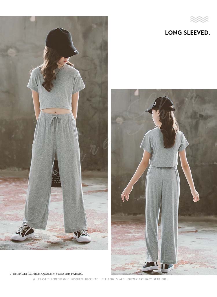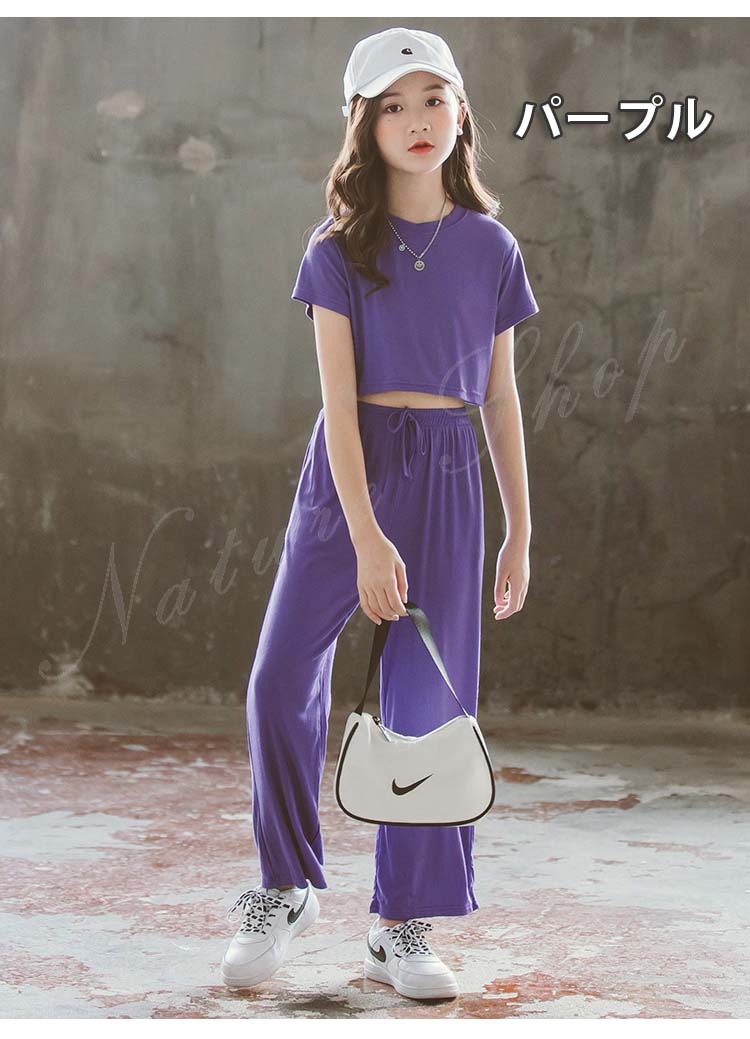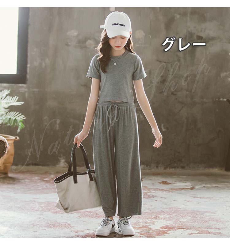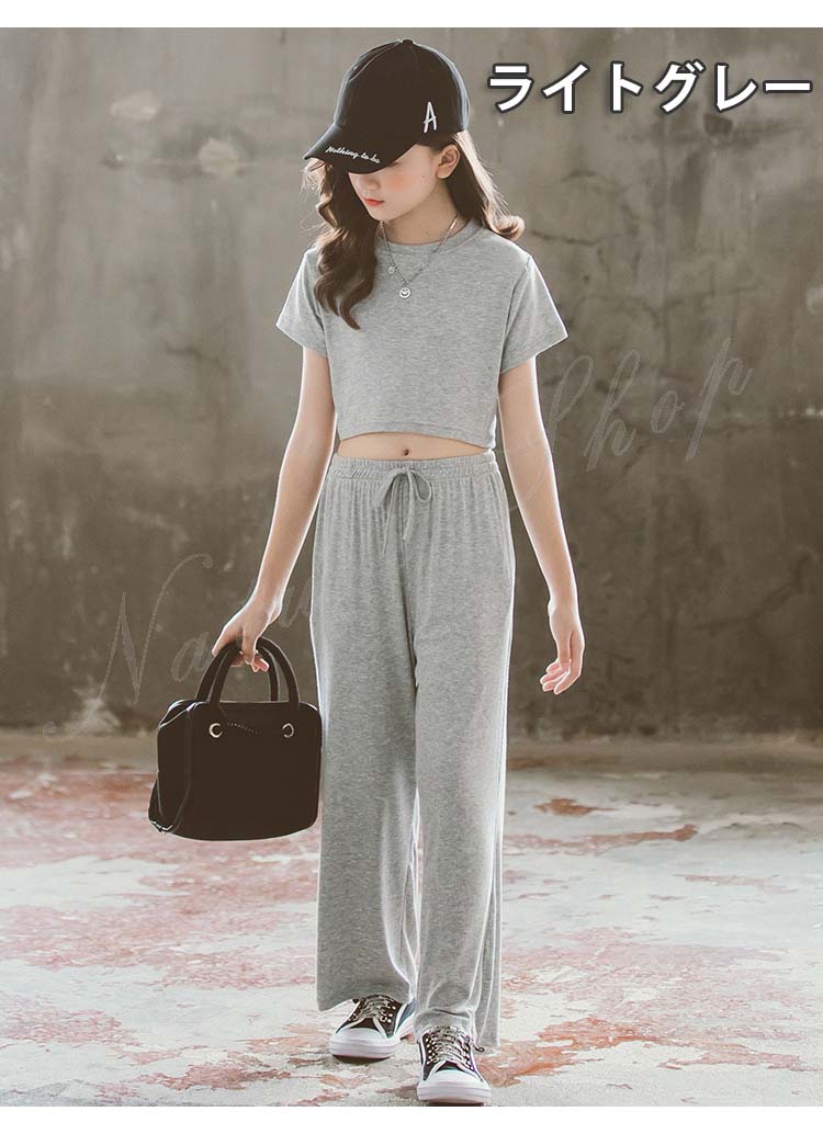 キッズダンス衣装 ダンス衣装 キッズ セットアップ トップス パンツ 子ども服 子供服 女の子 セットアップ 夏 夏服 カジュアル ナチュラル 無地 半袖 Tシャツ ロング丈