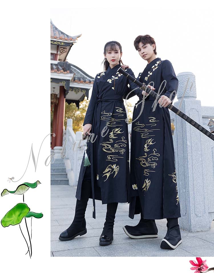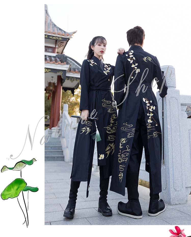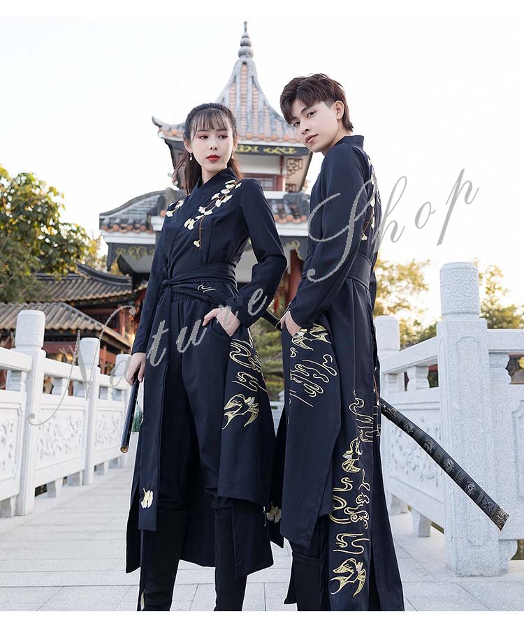カップル 漢服唐装 男女兼用 パンツセット メンズ レディース 中華伝統漢服 ロング丈シャツ 春 夏 秋 花柄 刺繍 中華古風 コスプレ衣装コスプレ漢服 チャイナ舞台ステージ服