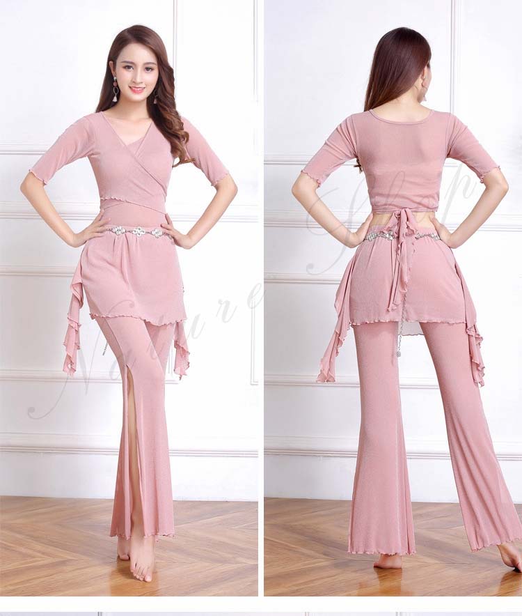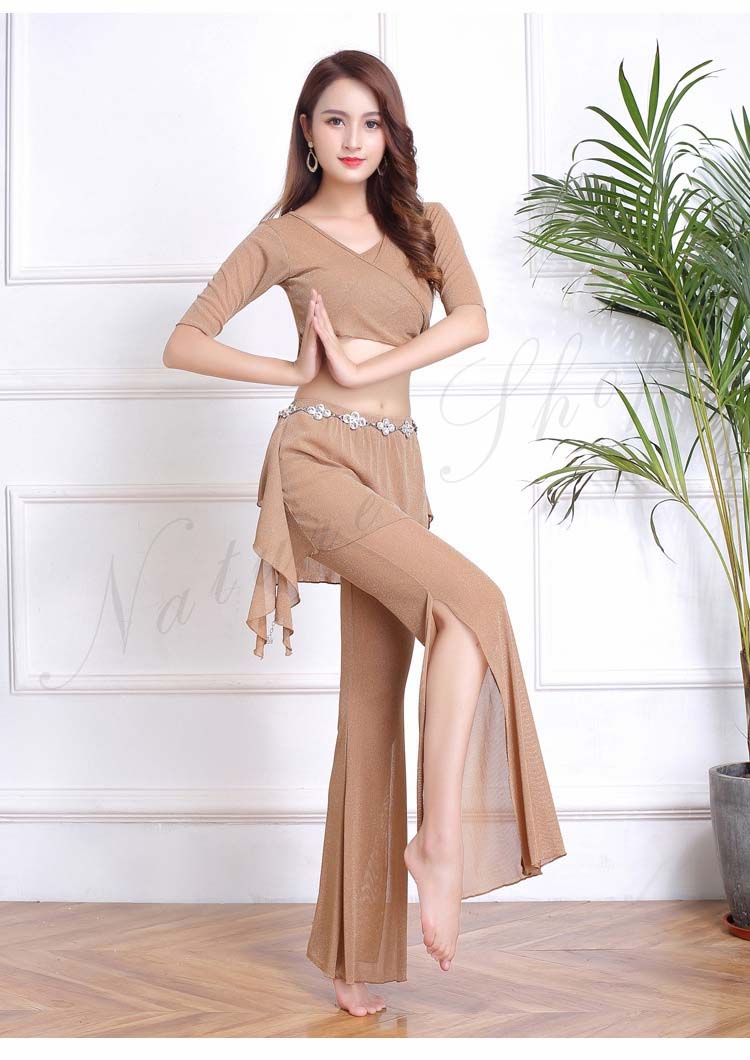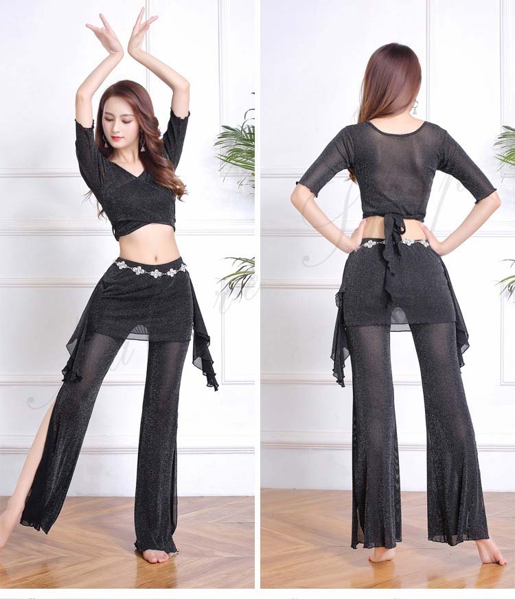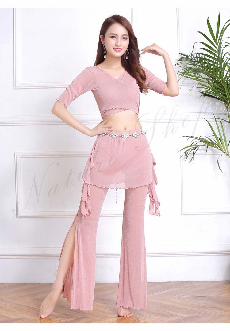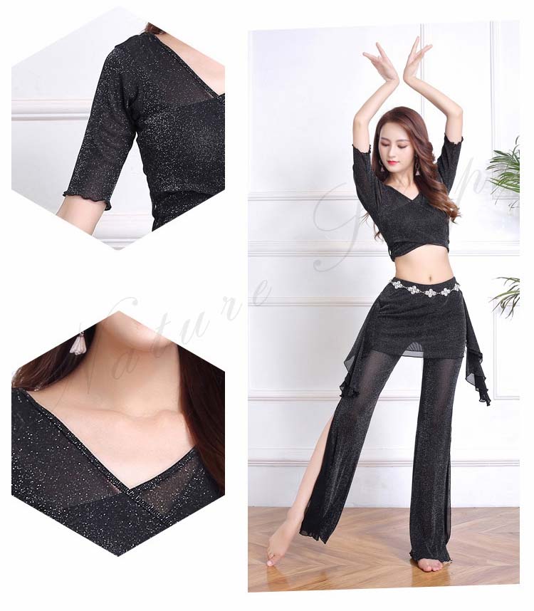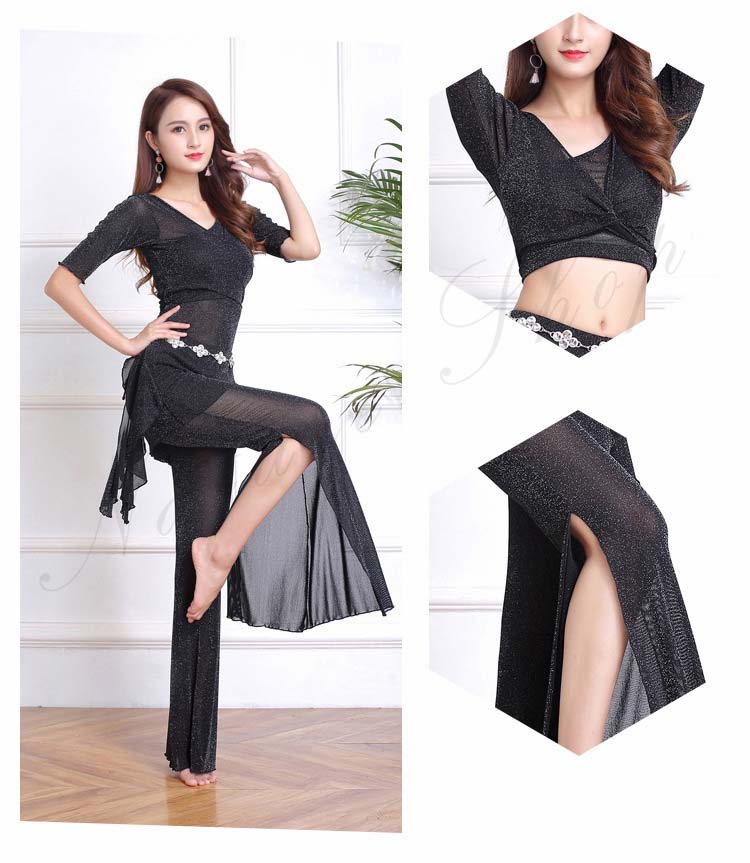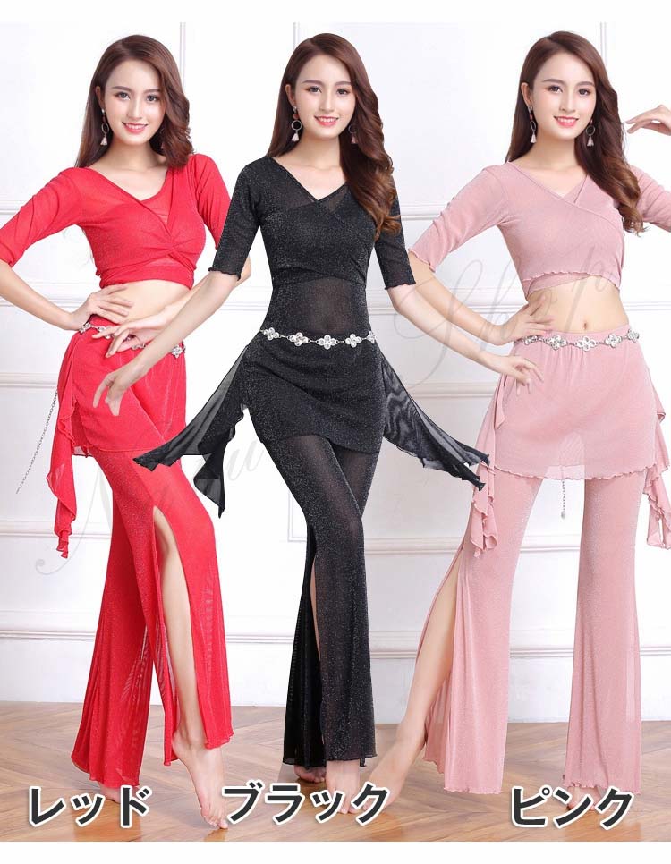 シースルー パンタロン 五分袖 ヨガ 衣装セット リボン レディース 衣装S~3XL ラメ入り Vネック dance バレエ スカーフ付き セットアップ ストレッチ ベリー ベリーダンス