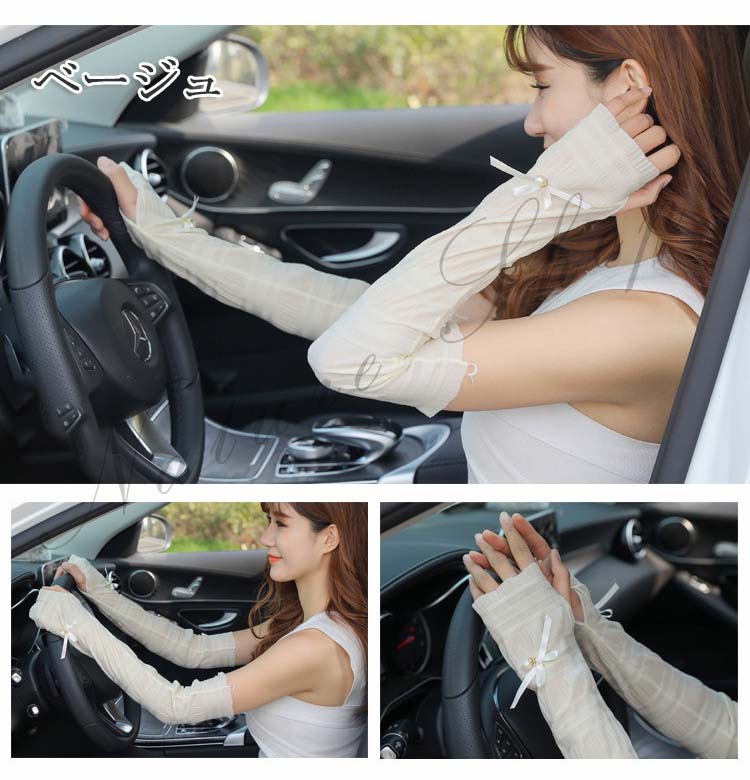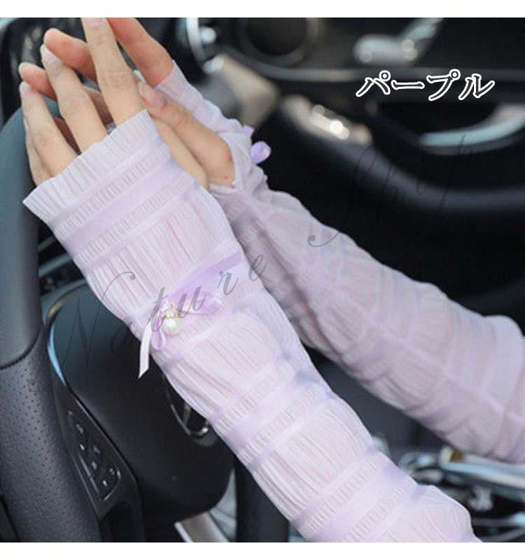 アームカバー レディース 紫外線対策 UVカット 涼しい 指穴なし 日焼け対策 夏用 UV対策 春 夏 ロング UV手袋 手袋 リボン 指なし 腕カバー 可愛い おしゃれ 母の日