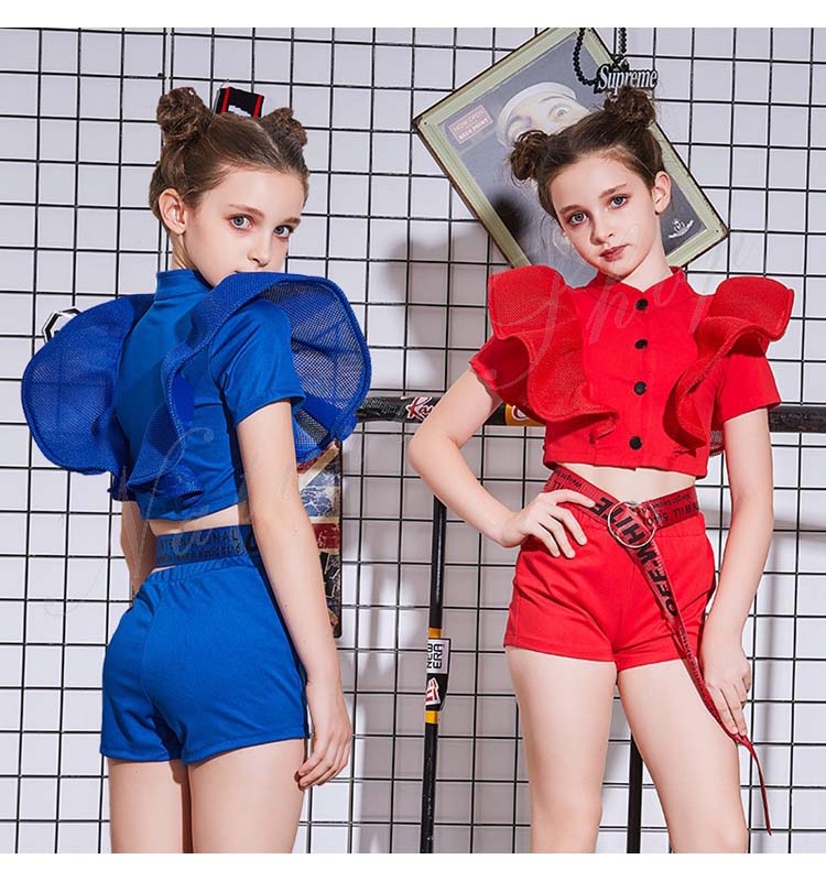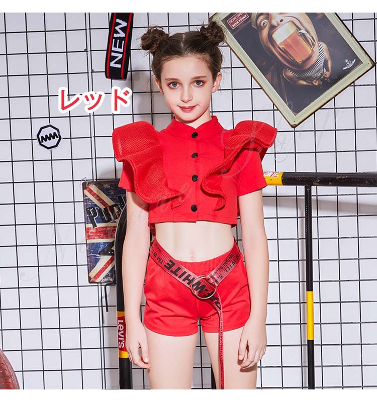 ダンス衣装 キッズ トップス パンツ セットアップ 子供服 子ども服 女の子 夏 夏服 セットアップ へそ出し フリル 無地 K-POP ヒップホップ 舞台衣装 ダンスウェア