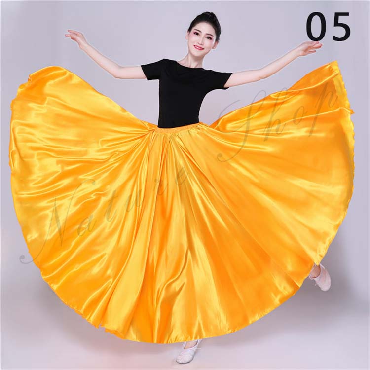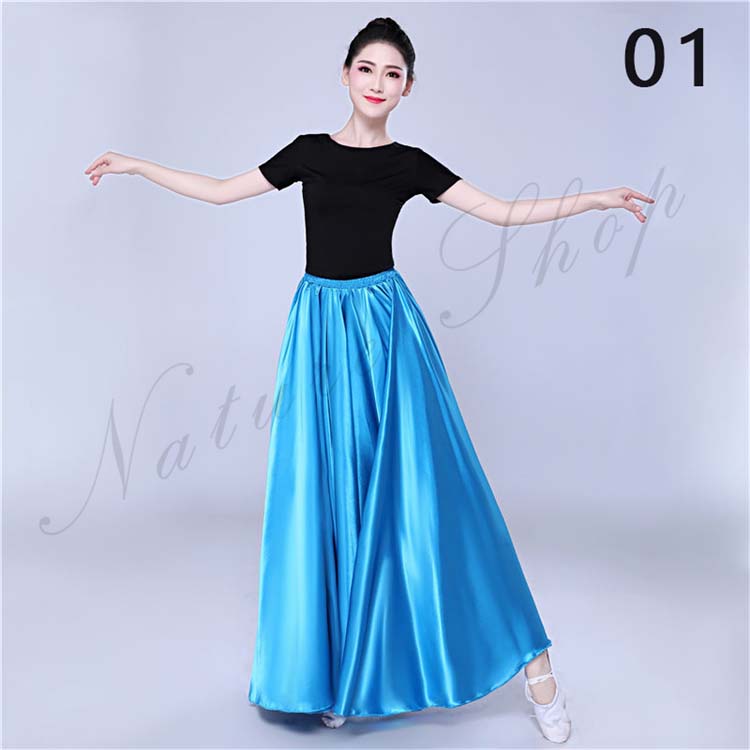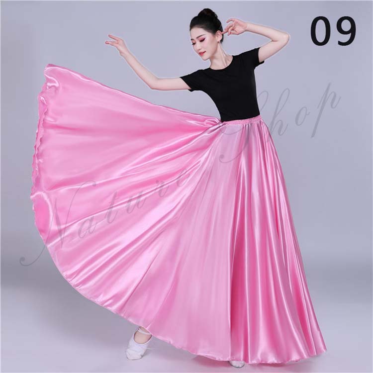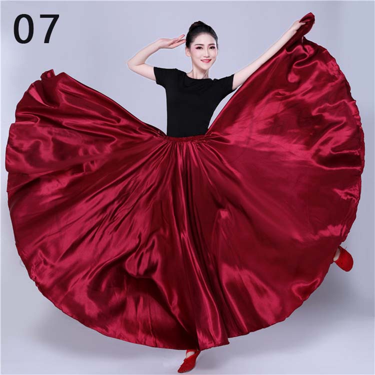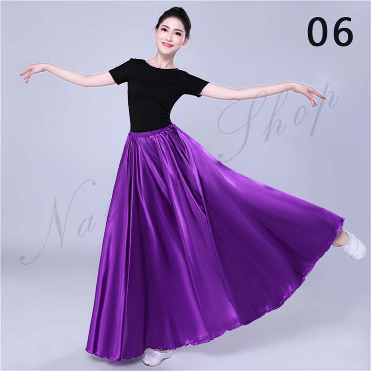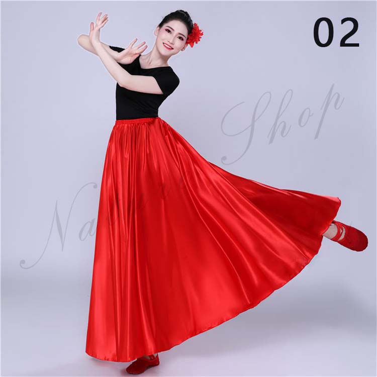 大きい裾 レディース サテン 白 青 赤 フレア ワイン スカート スカート フラメンコ 社交ダンス 12色選べる 光沢感有 無地 古典舞踊ダンス レッスン着 紫 大人 ロング丈 フラダンス