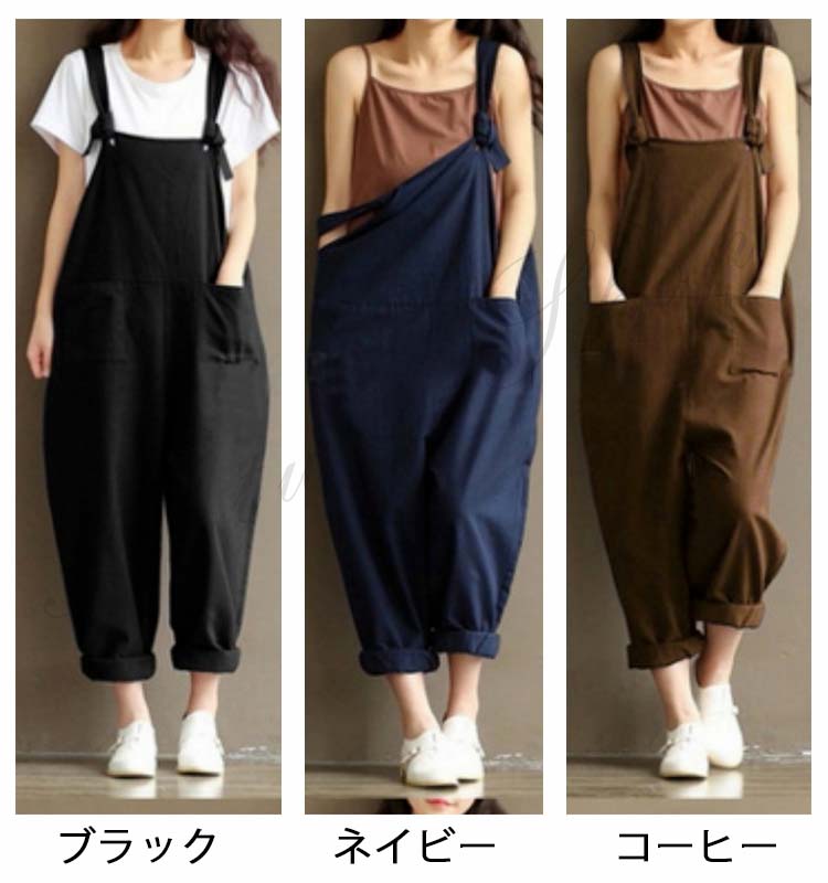 オーバーオール レディース 夏 黒 ブルー ブラウン 3色選べる ビンテージ サロペット サルエルパンツ レディース 大きいサイズ 無地 きれいめ オールインワン M L XL 2XL 3XL
