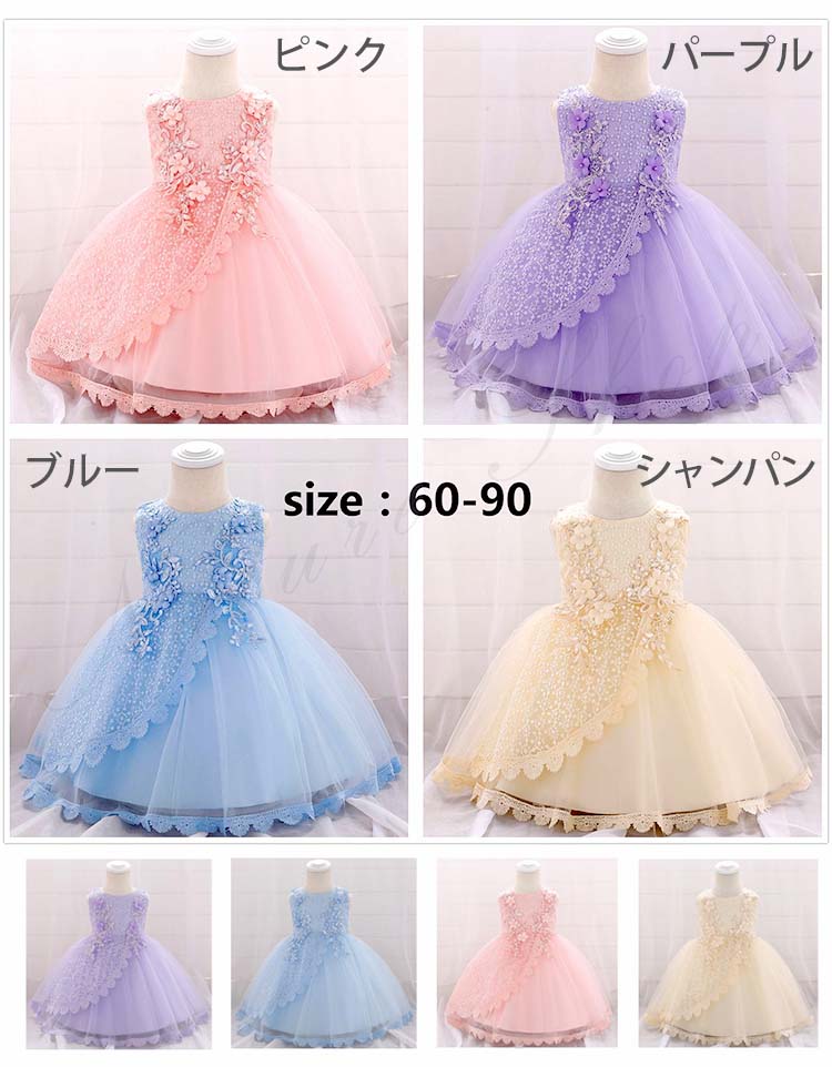 チュールスカート キッズ チュール ワンピース 夏 きれいめ 新生児 乳児 幼児 花柄 刺繍 花飾り 60 70 80 90cm ベビードレス 4colors 子供 ドレス 発表会 保育園 幼稚園