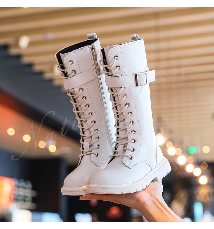 ロングブーツ 女の子 編み上げ ハーフ ブーツ 女の子 長靴 薄い裏起毛 おしゃれ 子供 フラット通学 通園 お出かけ 運動会 七五三 可愛い 軽量 撮影会