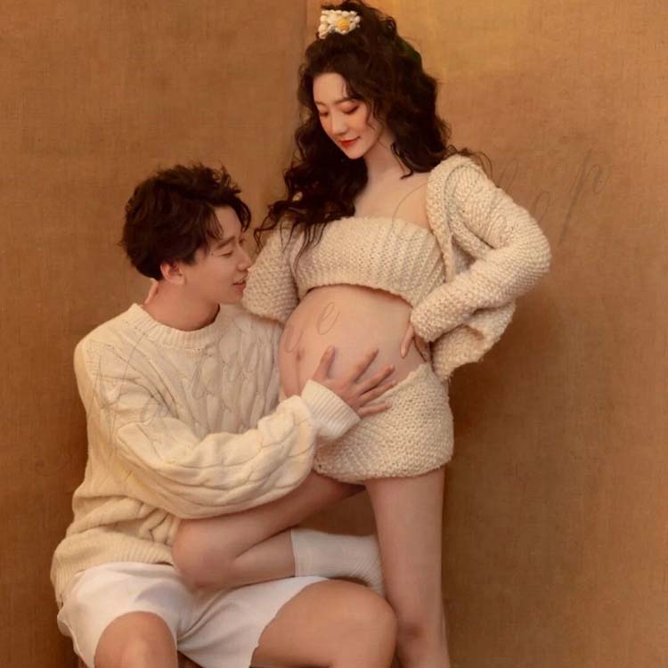 オーバー セーター 妊娠 記念撮影 ペア ママ 男女 チューブトップ フォト 撮影服 お揃い 撮影 衣装 写真服 上下セット おしゃれ カップル 可愛い 3点セット マタニティ 妊婦 妊婦衣類