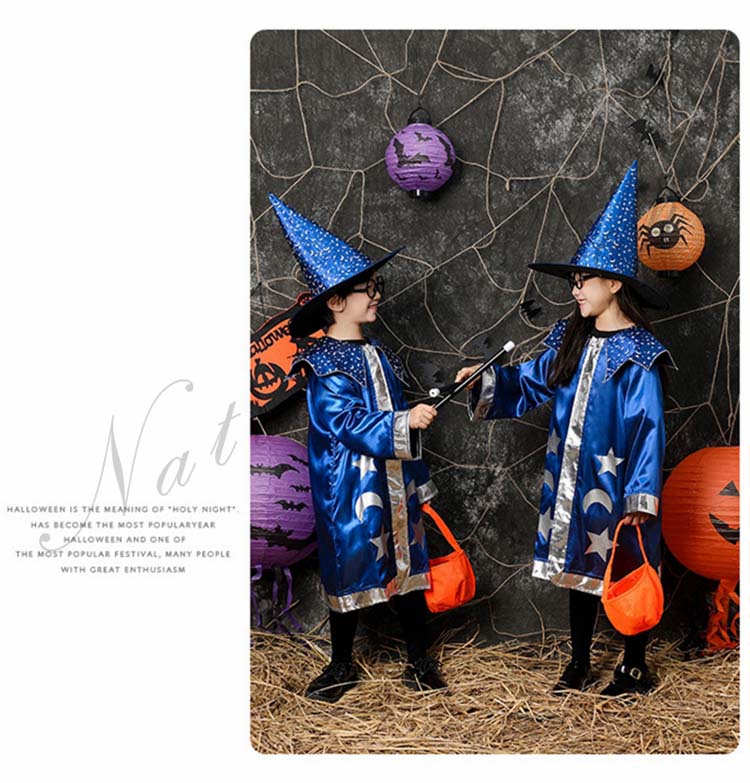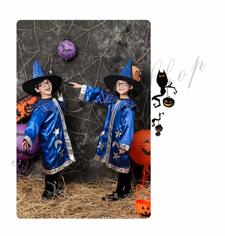 ハロウィーン衣装 魔女 女の子 コスプレ衣装 男の子 仮装 魔法使い 青 子ども 魔法 可愛い 魔法杖 マント ドレス キッズ 魔術師 精霊 魔女 パーティー 帽子 誕生日 発表会 学園祭