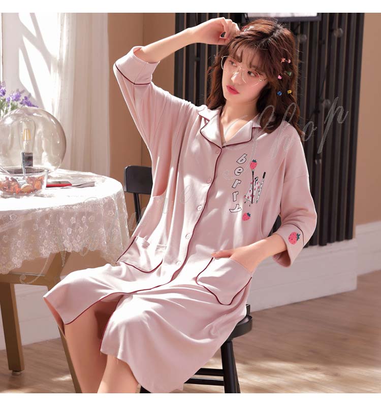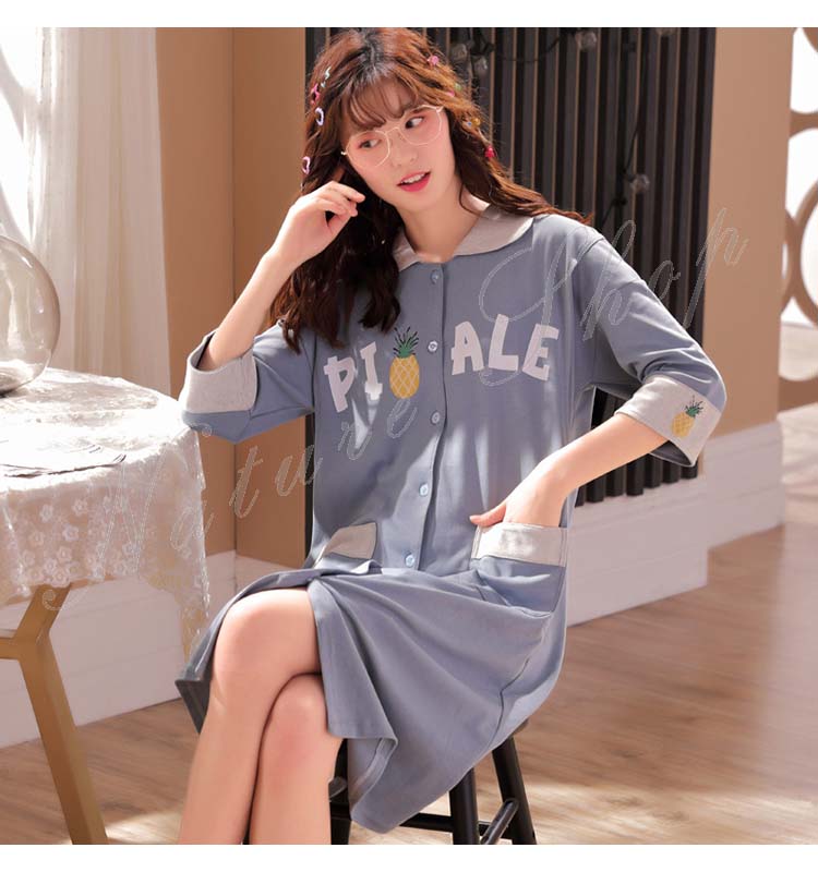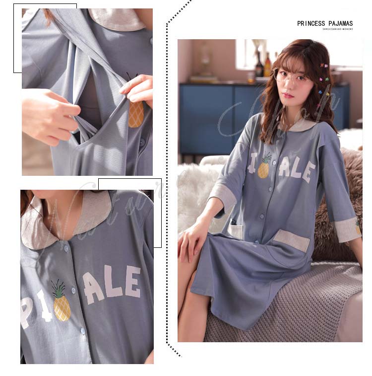 マタニティ パジャマ ワンピース 冬 授乳口付き 綿混 ルームウェア レディース 前開き ネグリジェ 長袖 マタニティパジャマ 可愛い 部屋着 春 秋 冬 産前 産後