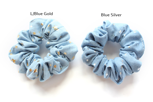 in デニム風星柄デザイン ヘアゴム キッズ 子供 髪留め 髪飾り ヘアアクセサリー シュシュ 夏 ユニコーン ワンポイント ポニーテール ハンドメイド