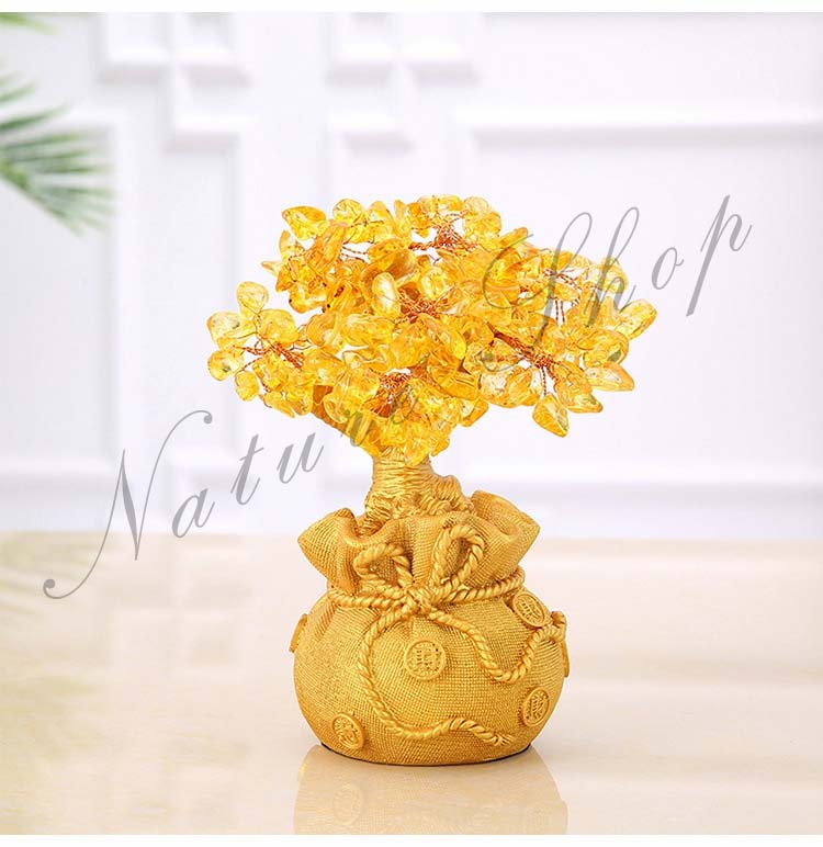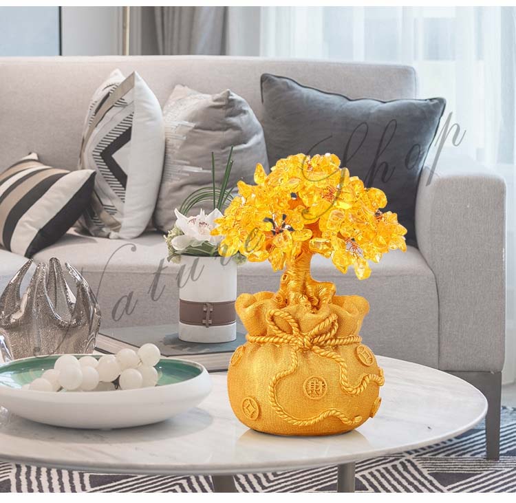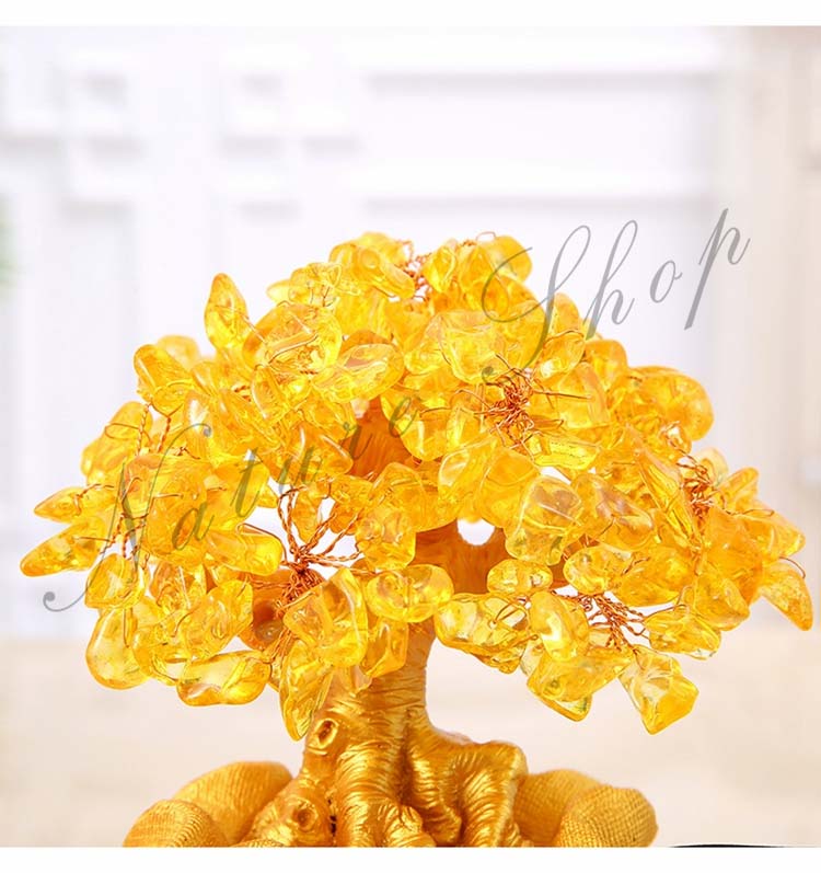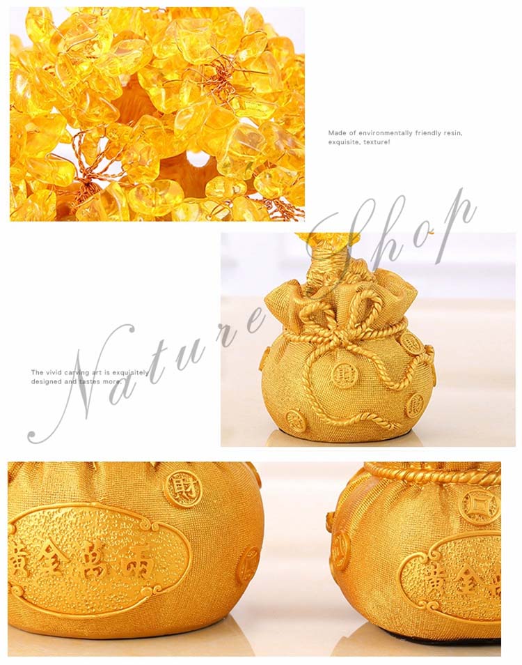 招財樹 金のなる木 樹脂 ゴールド 招財 飾り物 金運 シトリン 黄水晶 縁起物 商売 繁盛 風水 置物 財布 開運 財 アイテム