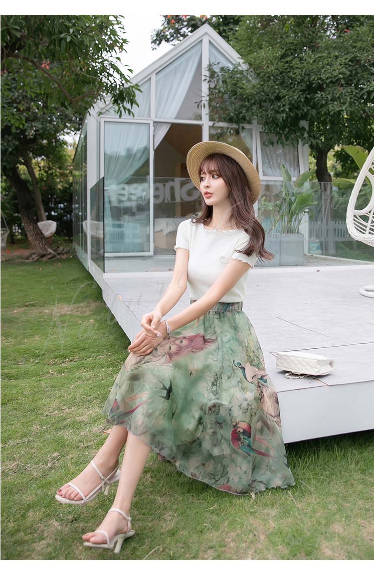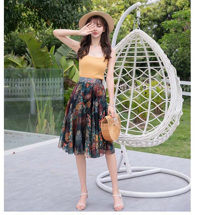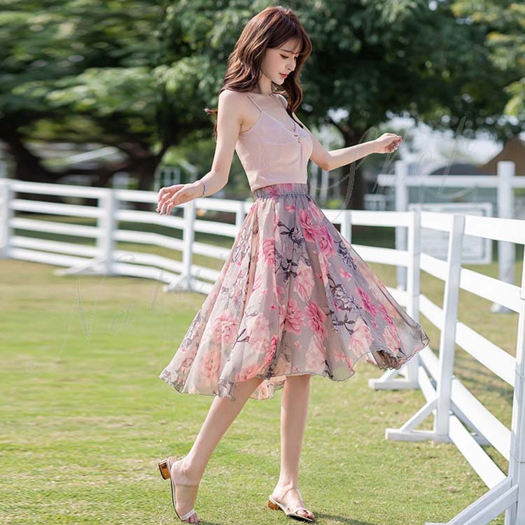 フレアスカート ロング 夏 春 膝丈