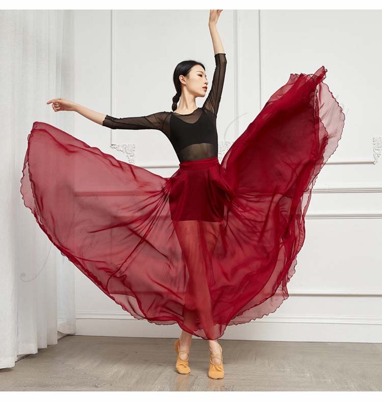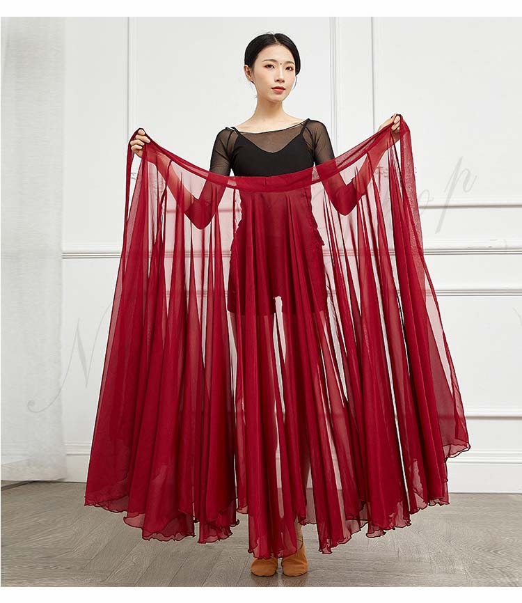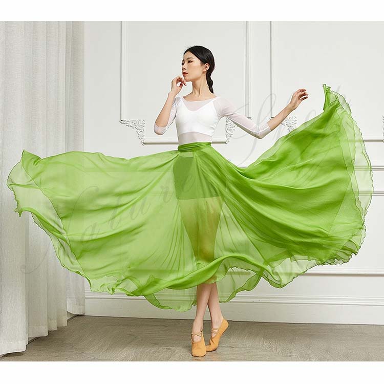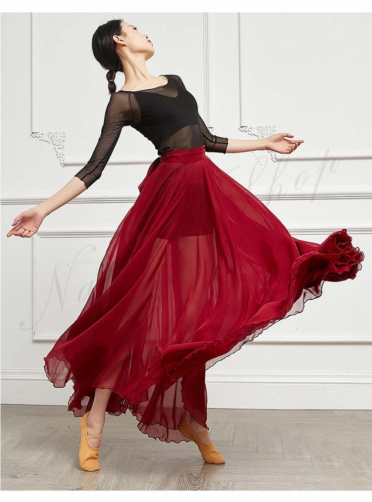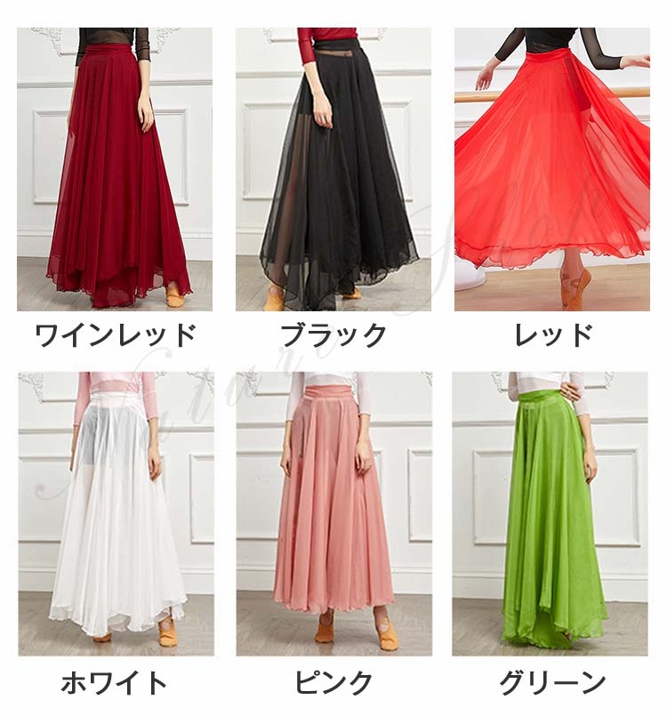 グリーン シフォンフレアスカート ダンス衣装 古典舞踊ダンスウエア フラメコ社交ダンススカート 古典ラテンバレエウエア ホワイト 巻きスカート ワイン ブラック チャイナ風民族