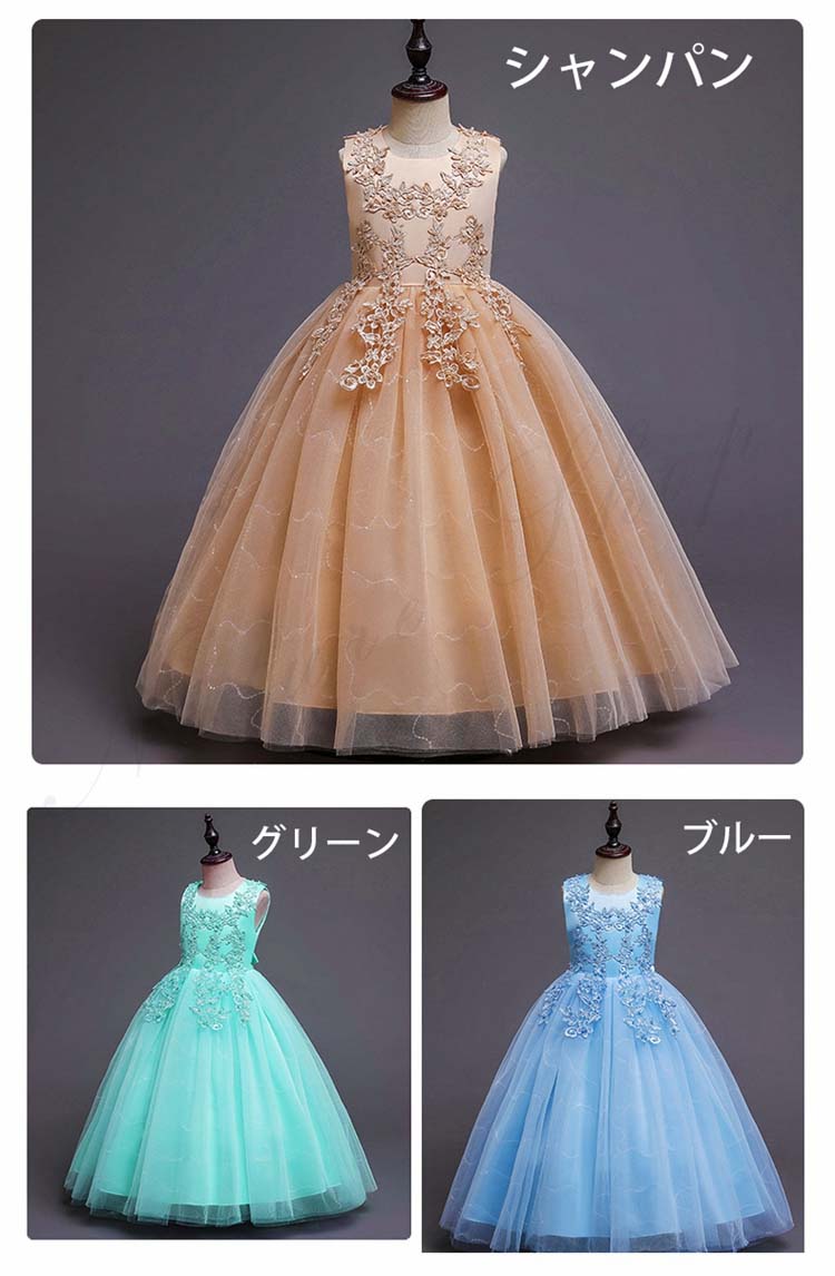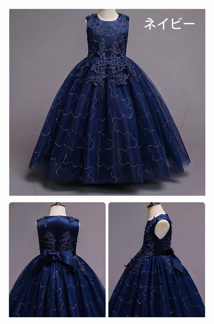 レディース イブニングドレス ジュニア コンクール ドレス 子供ドレス 子供 ドレス ピアノ 発表会 ワンピース 女の子 ノースリープ Aライン 着痩せ チュールスカート