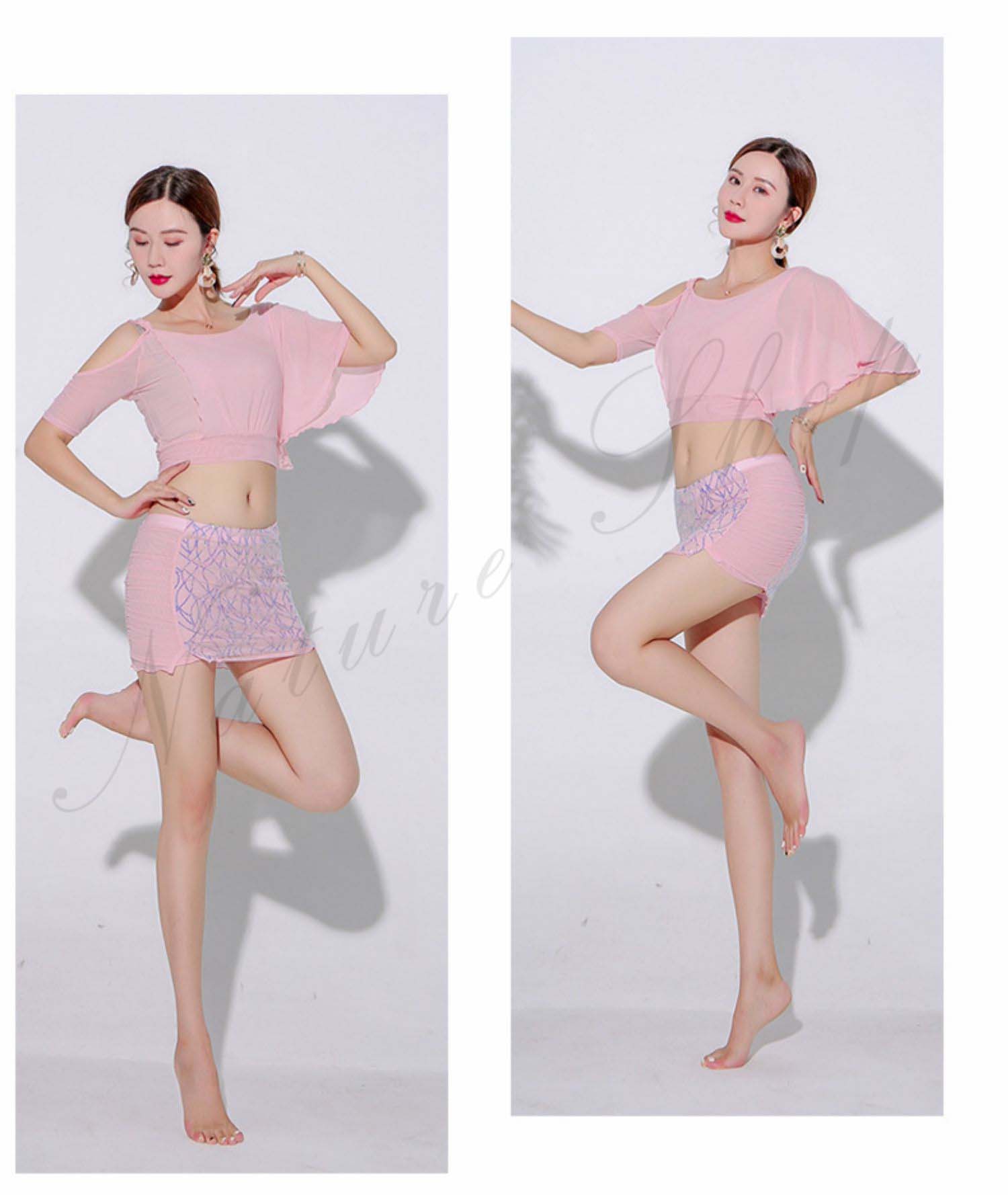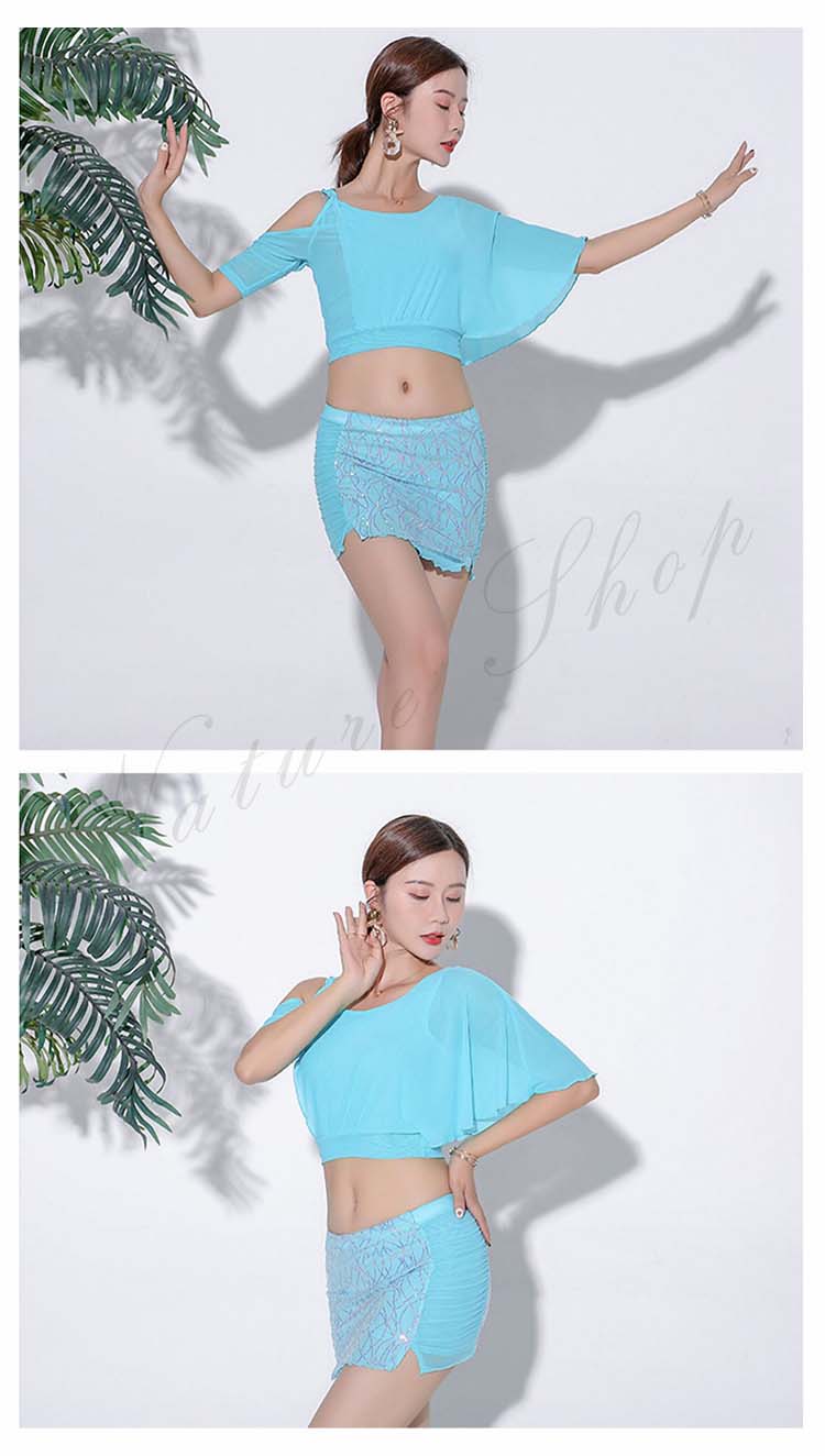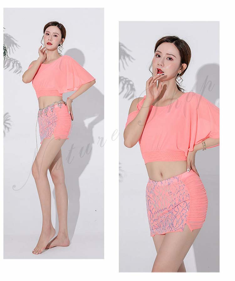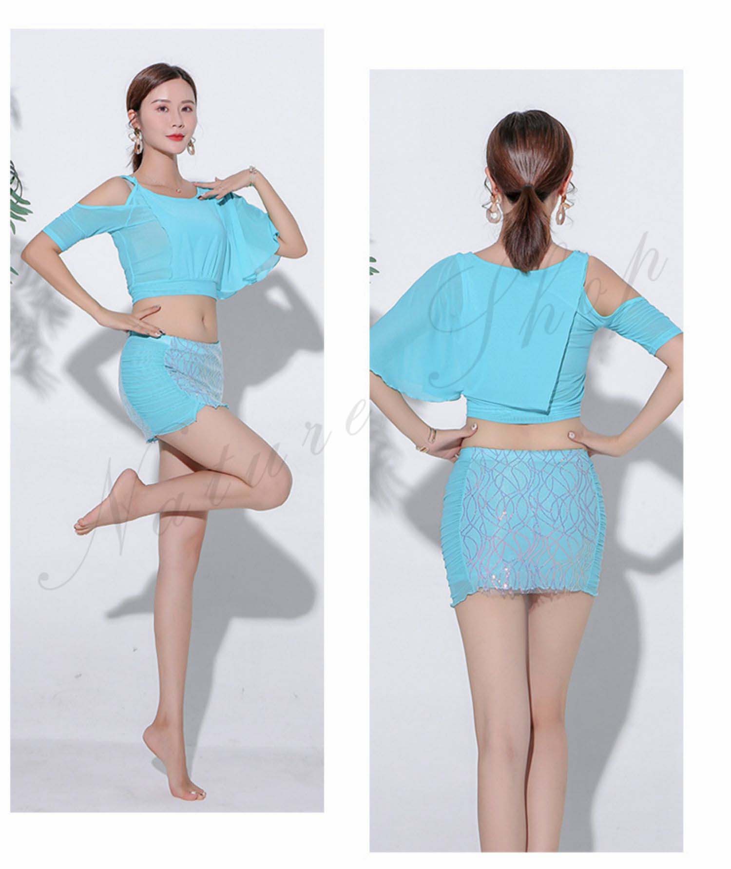 ベリーダンス レッスン着 セットアップ 社交ダンス ベリーダンス衣装 上下セット トップス ミニスカート ショートスカート インナー ダンス衣装 練習着 セクシー ラテンダンス