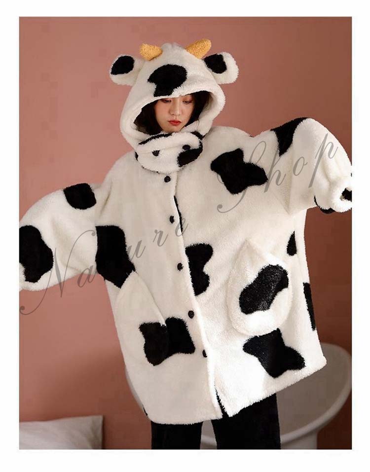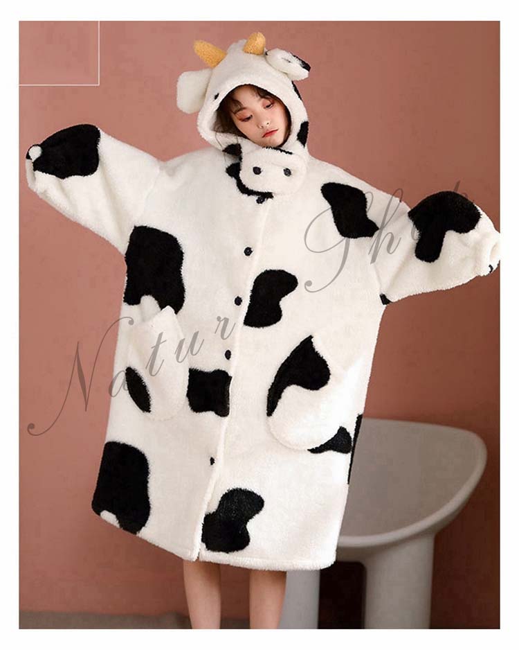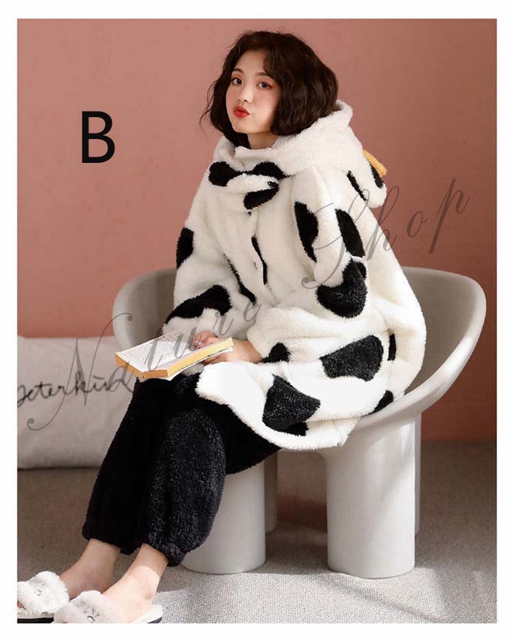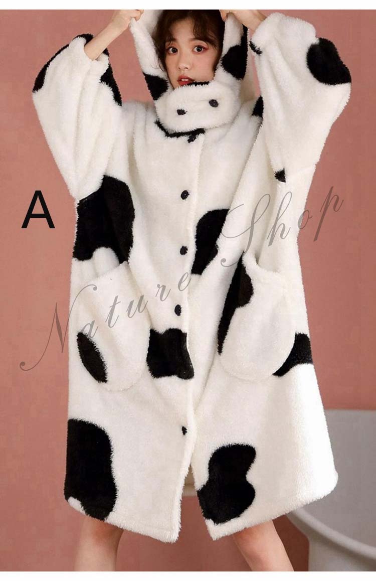 パジャマ ワンピース 着ぐるみ 乳牛 アニマル 帽子付き フランネル 長袖 フード付き 秋冬服 カップル もこもこ 大きいサイズ 可愛い 部屋着 モコモコ 寝巻き 柔らかい
