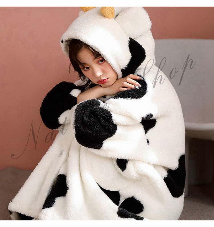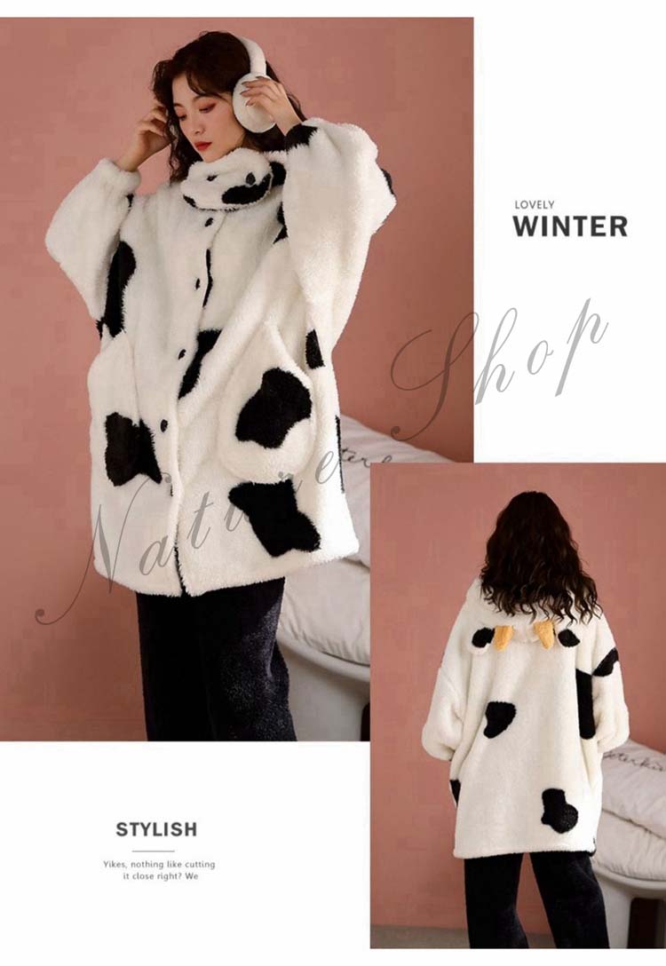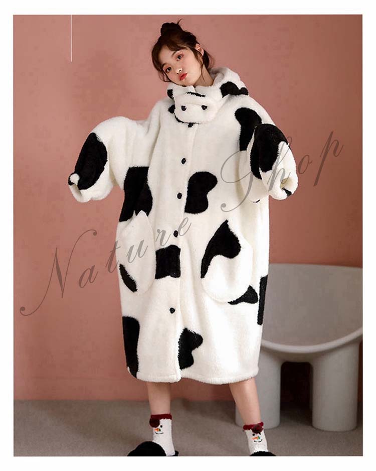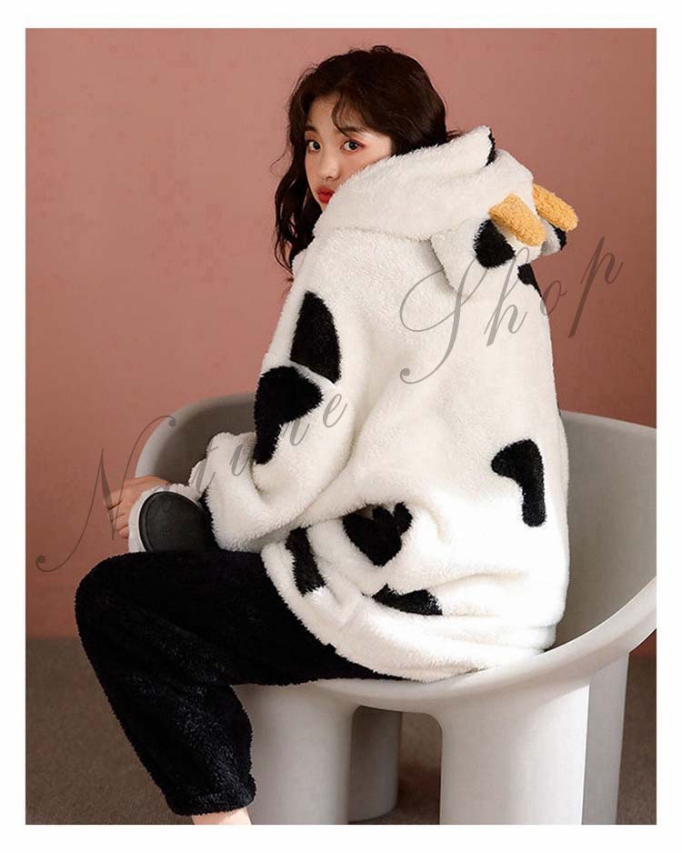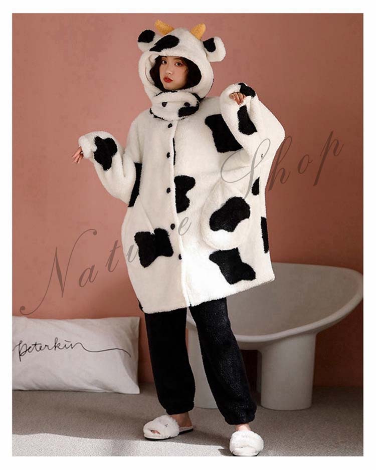 パジャマ ワンピース 着ぐるみ 乳牛 アニマル 帽子付き フランネル 長袖 フード付き 秋冬服 カップル もこもこ 大きいサイズ 可愛い 部屋着 モコモコ 寝巻き 柔らかい