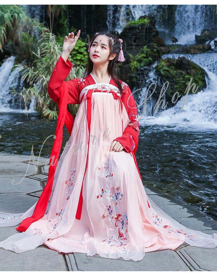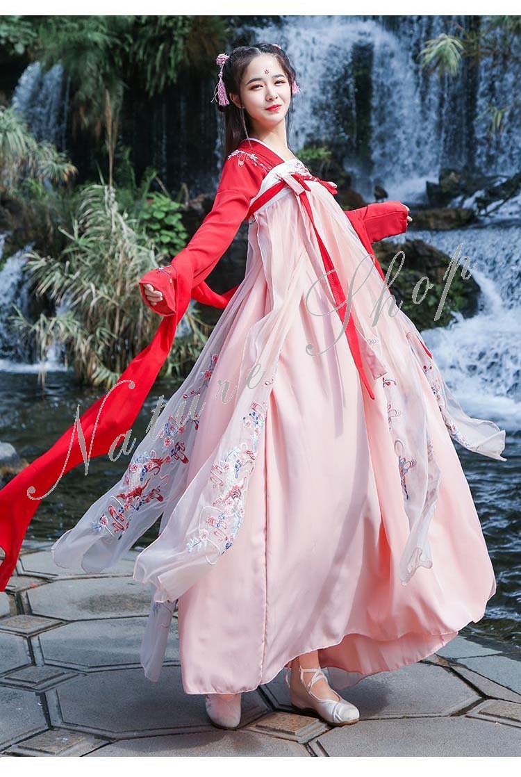 ハロウィン衣装 唐装漢服 中華服舞台服装 レディース 仙女服 華流ステージ コスプレ衣装チャイナ風 ロングドレス コスプレ衣装 宮廷風 学園祭 ワンピース パーティーダンス衣装