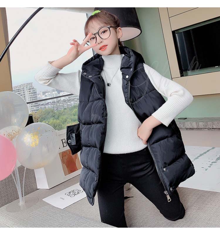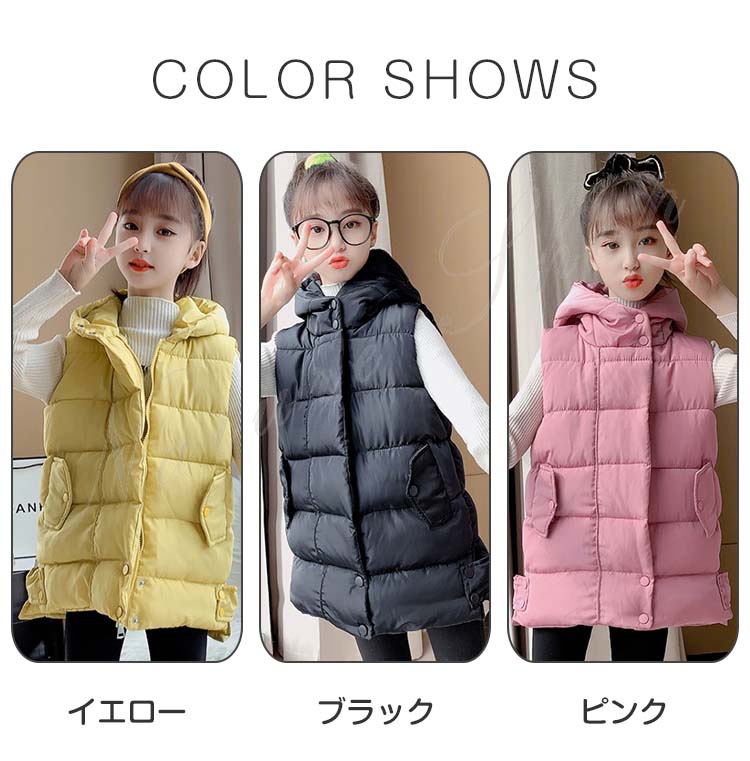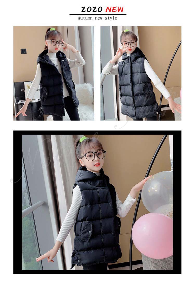 ベスト キッズ 中綿ベスト 女の子 防寒ベスト キッズコート 綿入れ 子ども アウター ロングベスト 秋冬 中綿ジャケット フード付き 可愛い お出かけ スウィート