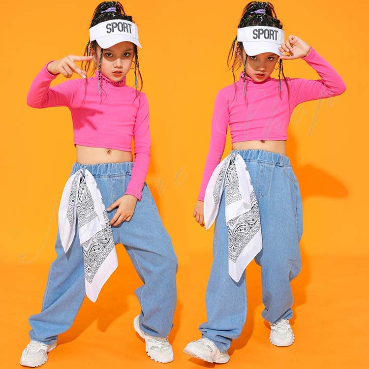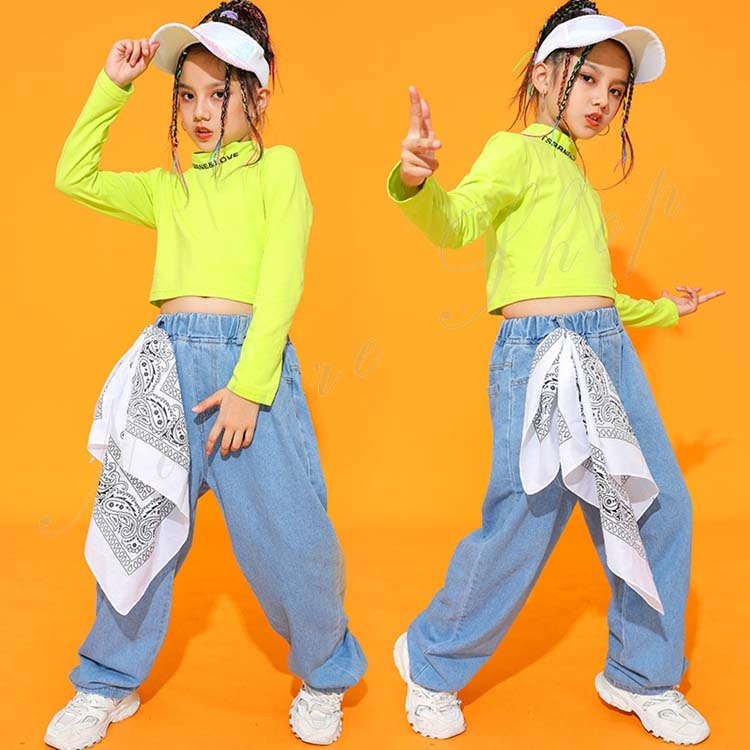 デニムセット レディース キッズ 女の子 カジュアル 大きいサイズ おしゃれ ダンス衣装 キッズ へそ出し 長袖 Tシャツ デニム タンクトップ ベスト ジーンズ ヒップホップ ストリート