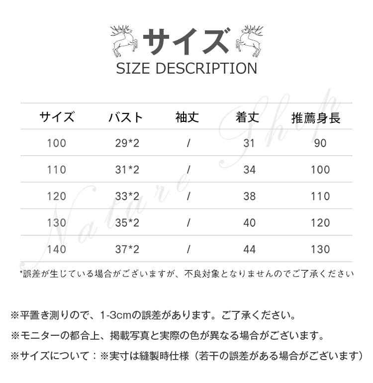 サイズ: 100(推薦身長90cm) 110(推薦身長100cm) 120(推薦身長110cm) 130(推薦身長120cm) 140(推薦身長130cm)