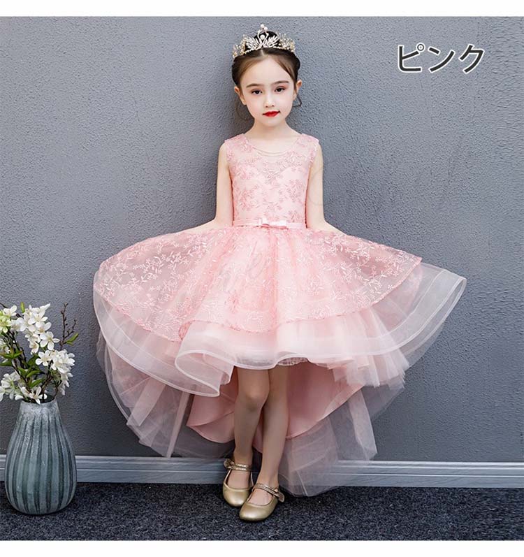 ジュニアドレス 子供ドレス 子供 ドレス ピアノ コンクール 発表会 ワンピース 袖なし ひざ丈 姫 女の子 花柄 刺繍 チュールスカート チュール ワンピース ノースリーブ