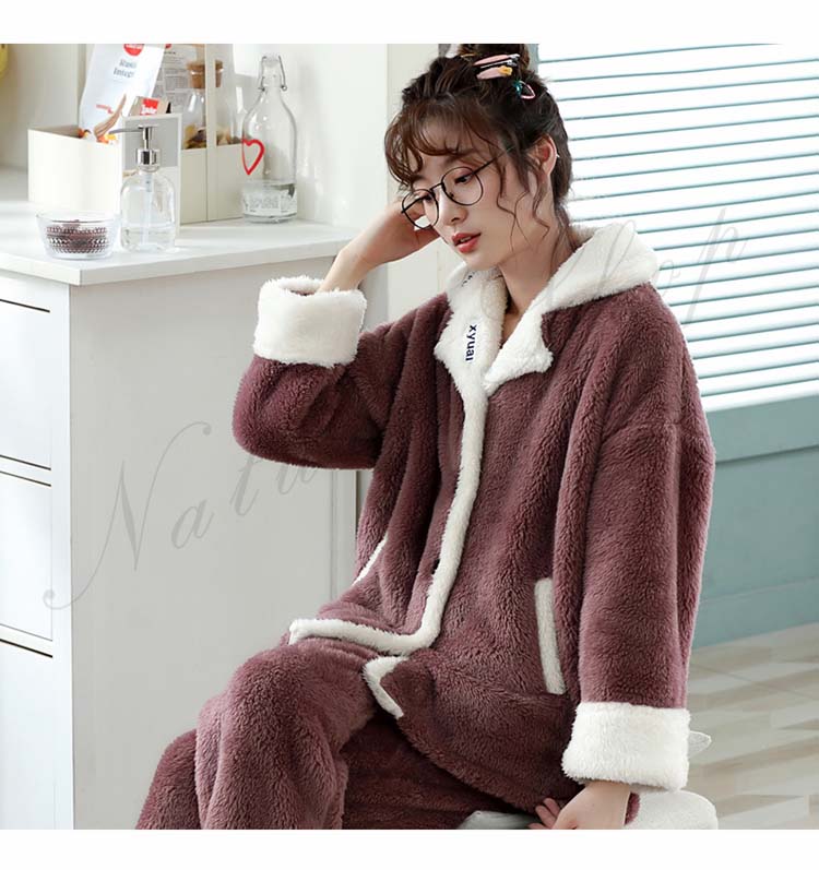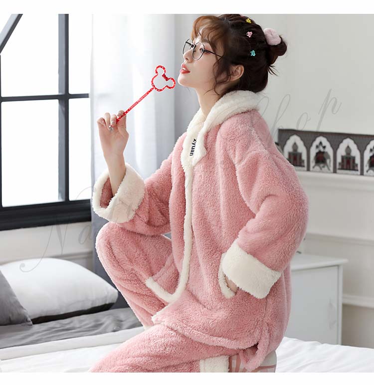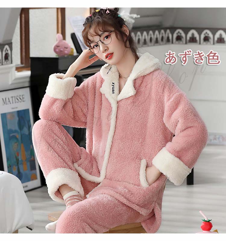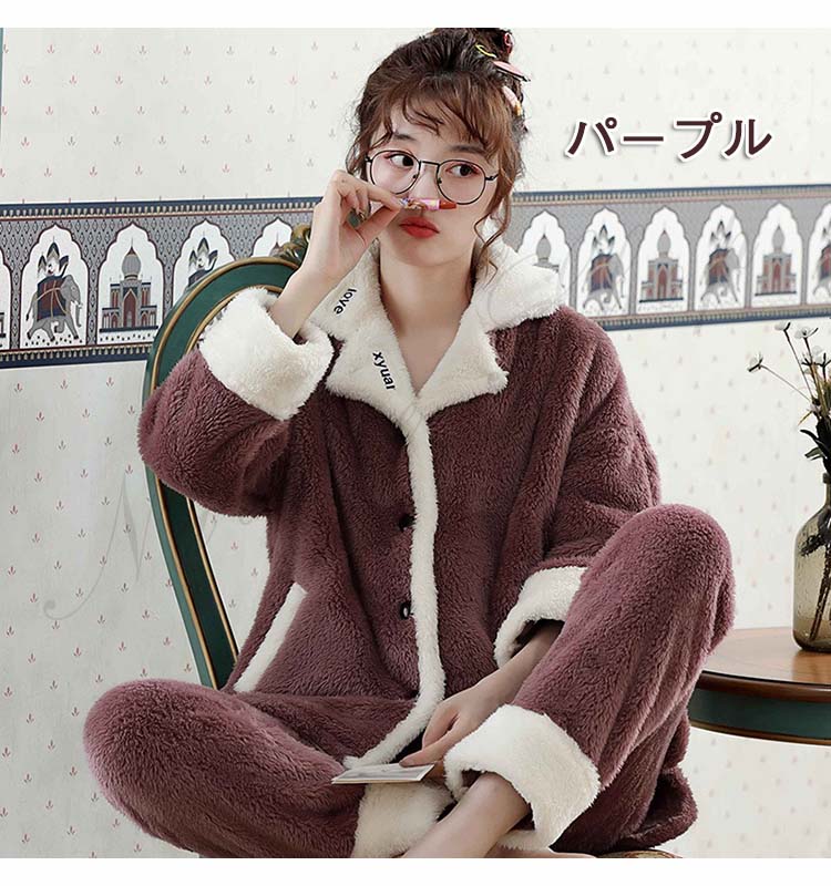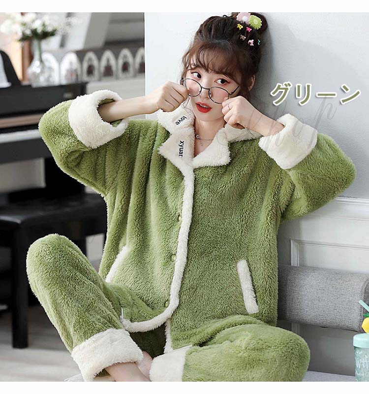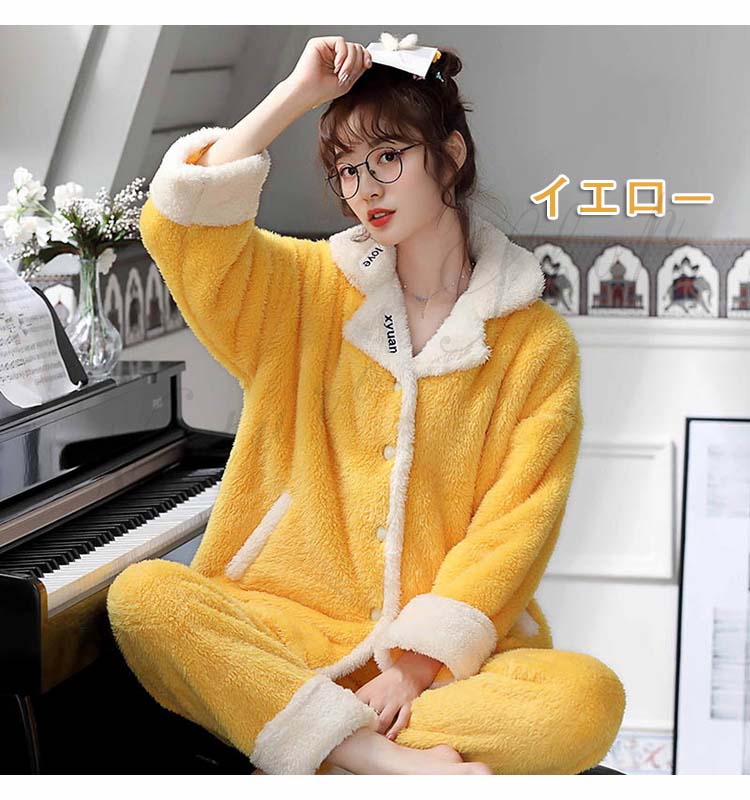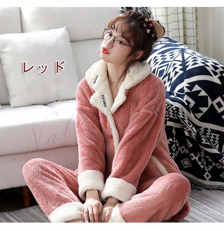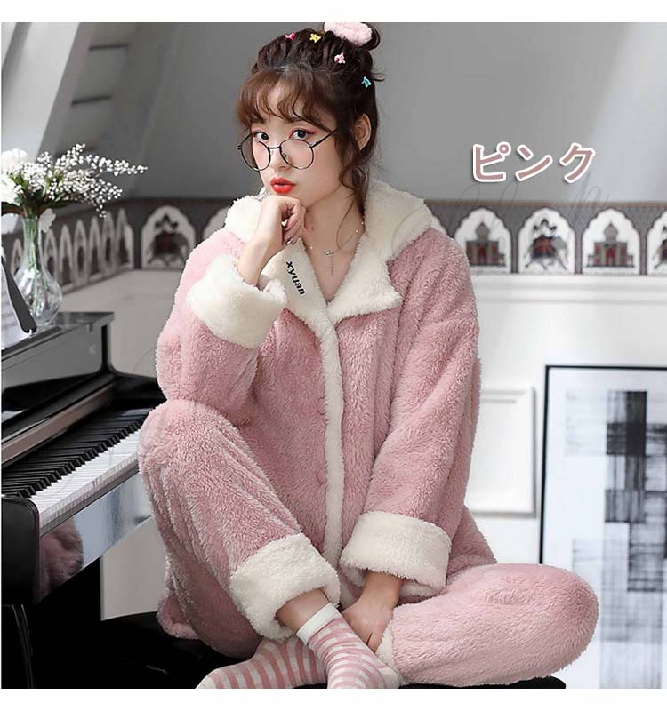 パジャマ レディース セットアップ 長袖 ナイトロープ モコモコ 暖かい 厚手 韓国風 寝巻き 上下セット ルームウェア 冬 フランネル 部屋着 大きいサイズ 可愛い ナイトウェア