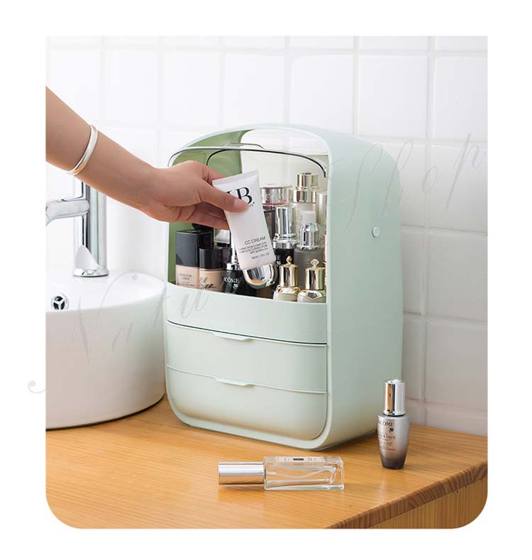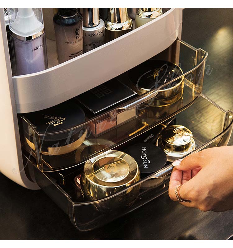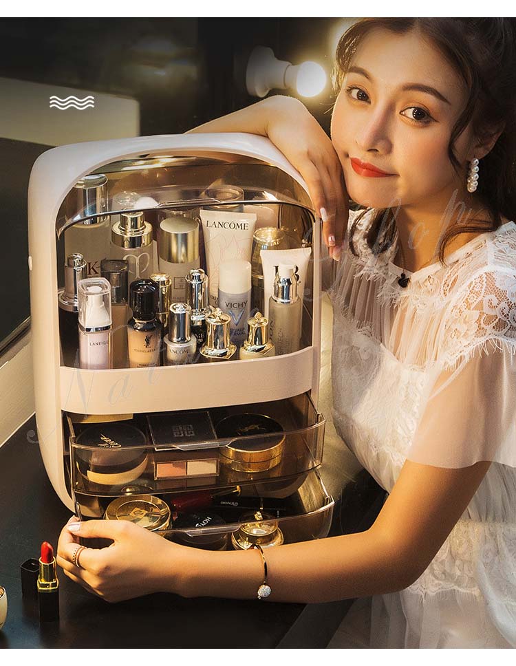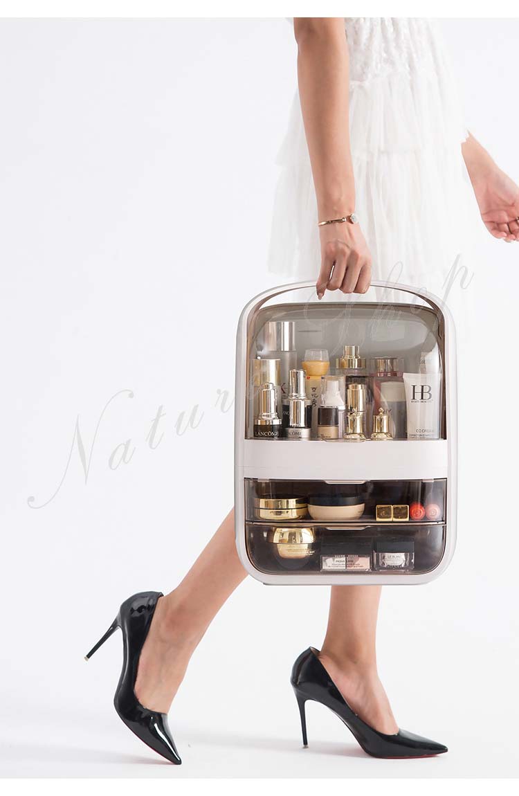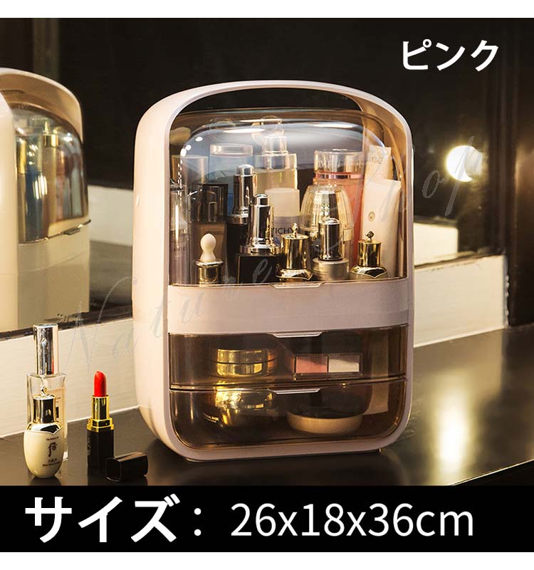 化粧品収納 メイクボックス コスメボックス メイクケース 防塵 防水 大容量 スキンケア用品 小物入れ 顔面所 引き出し式 透明 蓋付き 卓上収納 寝室