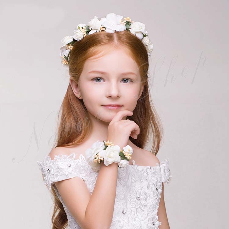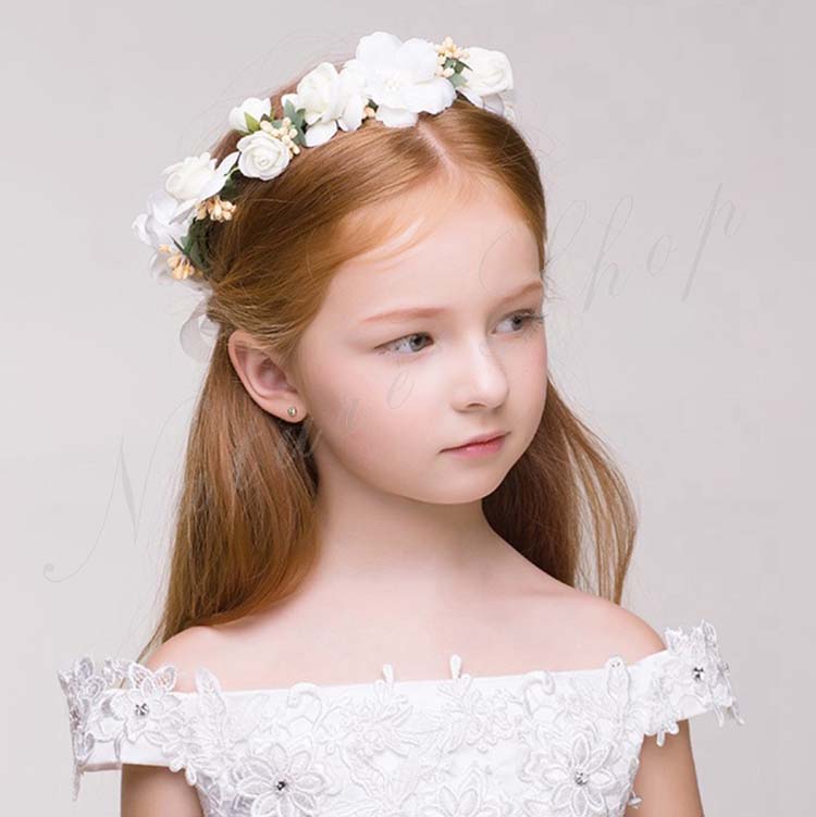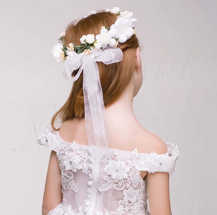 カチューシャ 子供 ティアラ キッズ 花冠 クラウン ヘッドドレス ウエディング 髪飾り ピアノ発表会 花輪 コンクール ブライダル用 ピンク ホワイト パーティー 誕生日