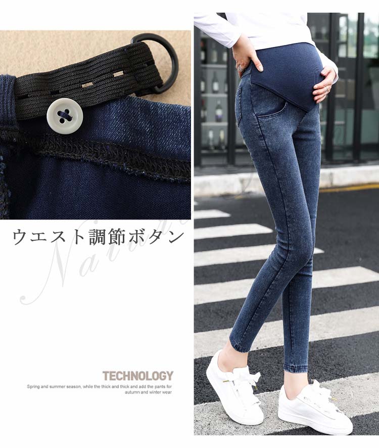 マタニティ デニム パンツ レギンスパンツ 細身 アジャスター 美脚 ストレッチ スキニーパンツ 産後 レディースパンツ マタニティデニム デニムパンツ デニム ボトムス