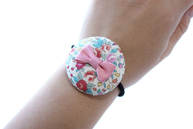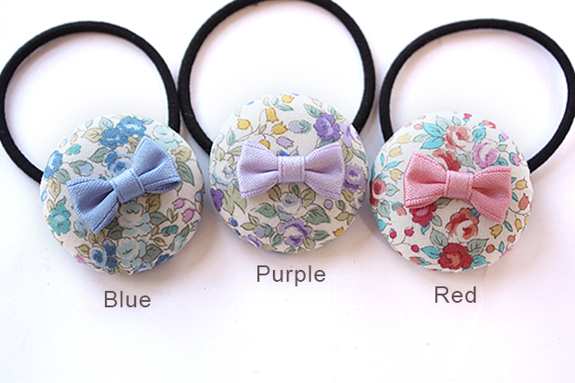 BIGリバティ柄くるみボタン◎上質サテンminiりぼん付きデザイン キッズ ヘアゴム ヘアアクセサリー 髪飾り 髪留め 保育園 幼稚園 くるみボタン リバティ