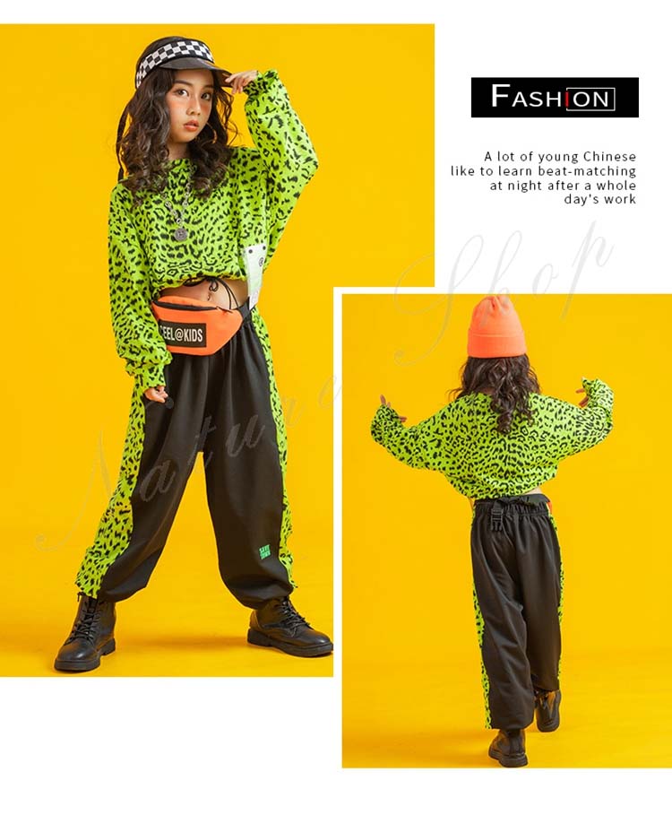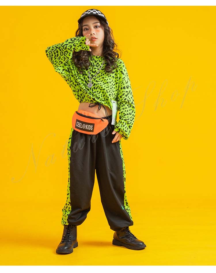 ダンス衣装 キッズ トップス パンツ 子供服 子ども服 女の子 カジュアル ナチュラル 長袖 パーかー へそ出し ロング丈 ズボン 豹柄 ヒョウ柄 総柄 ダンスウェア レディース ジュニア