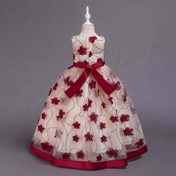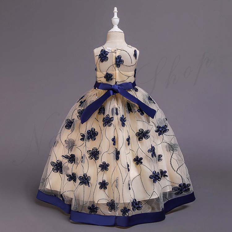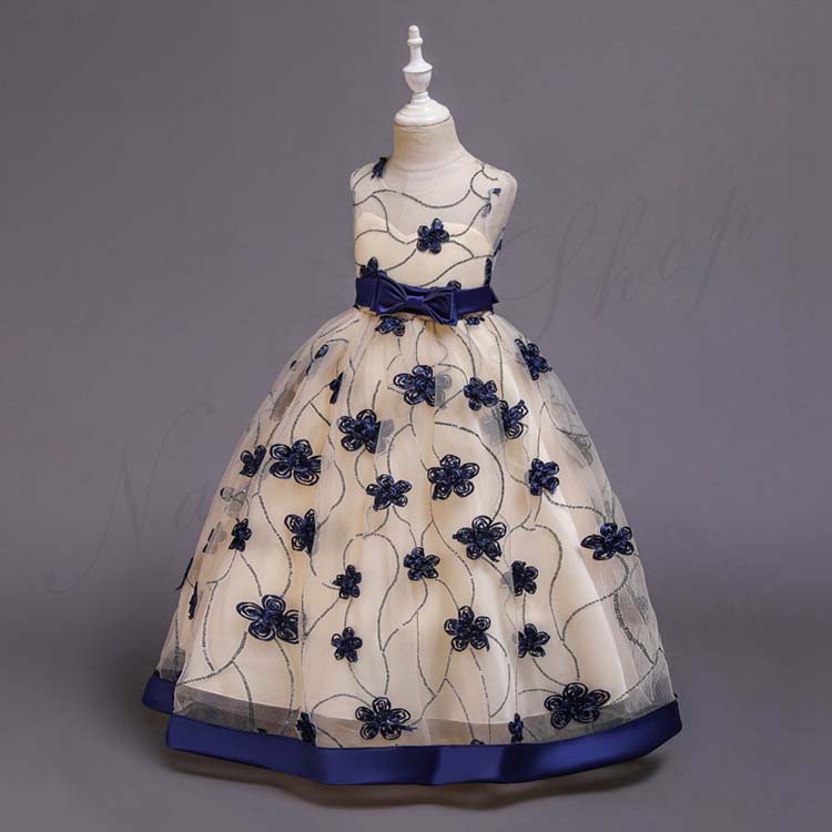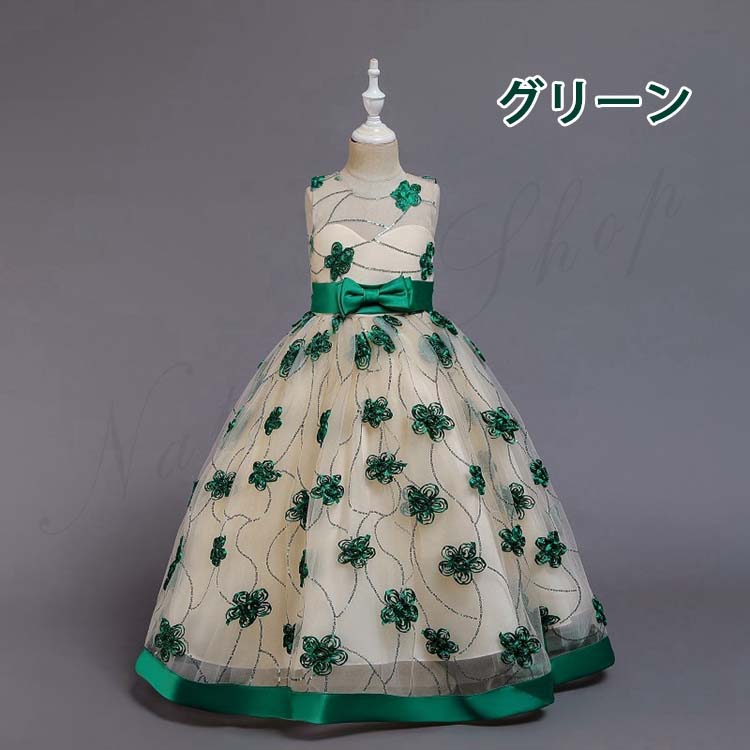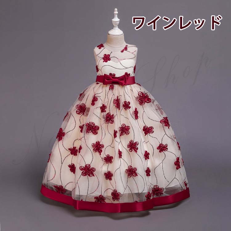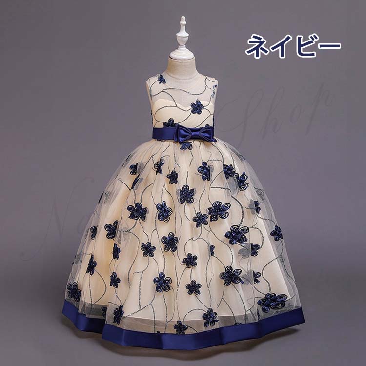 ジュニア コンクール ドレス 子供 ドレス ピアノ 発表会 ワンピース 袖なし ノースリーブ ロング 姫 花柄 刺繍 ウェディングドレス バックファスナー チュールスカート