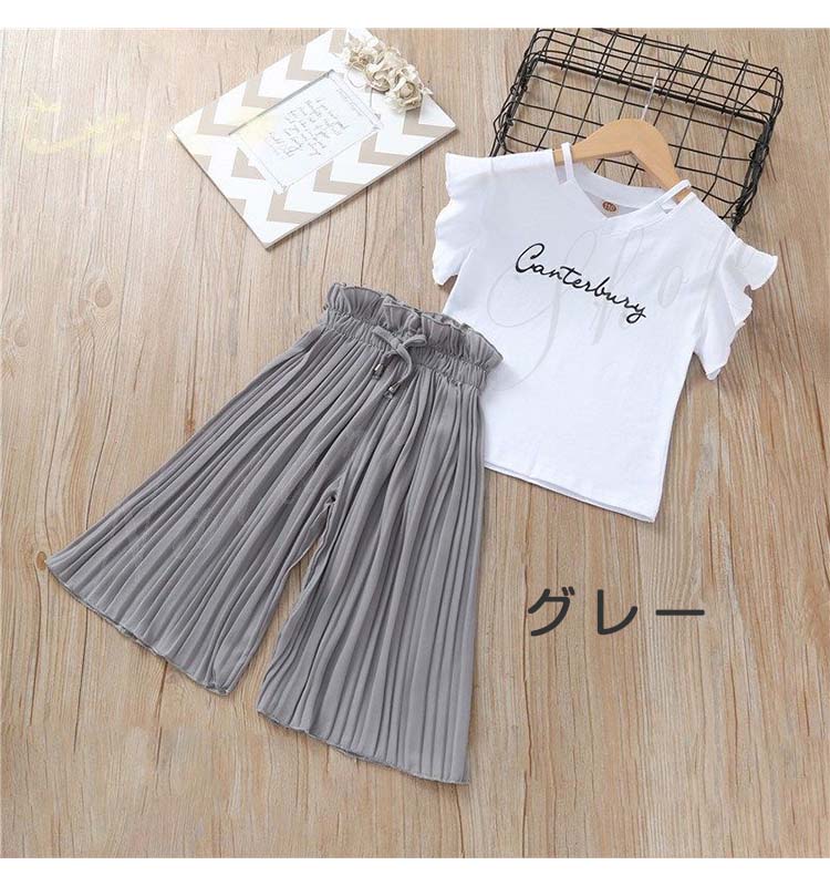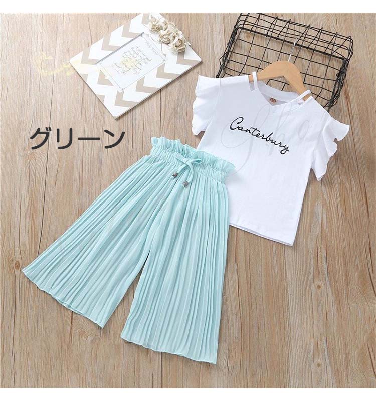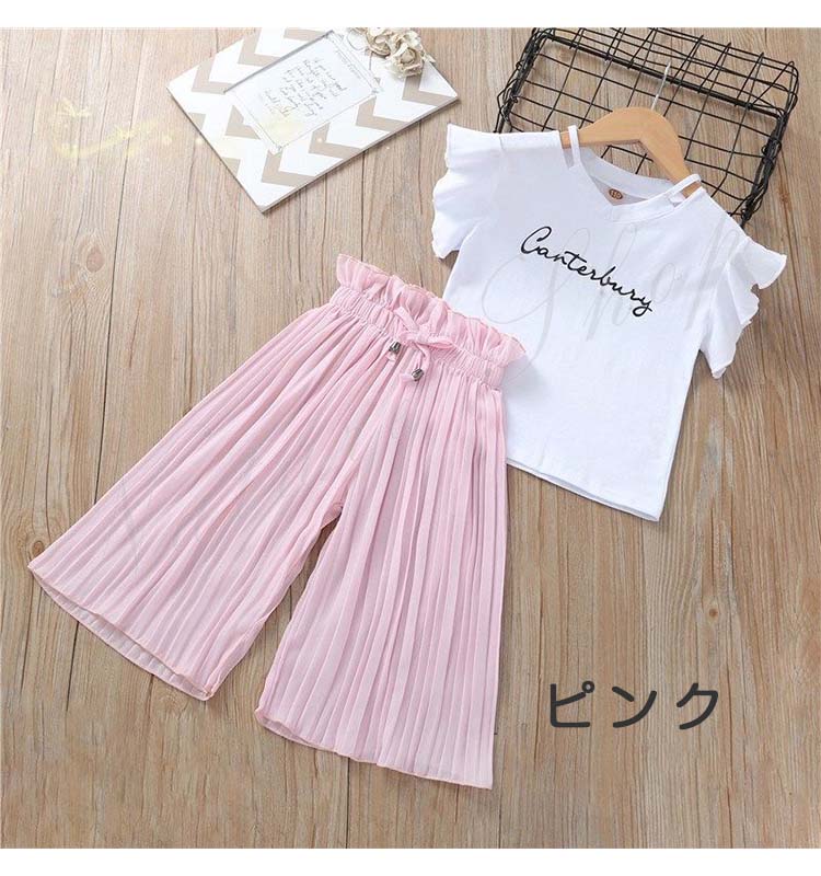 韓国子供服 女の子 セットアップ トップス プリーツパンツ 夏 普段着 tシャツ パンツ キッズ お出かけ 2点セット夏服 カワイイ 通学 旅行 上下セット 遠足