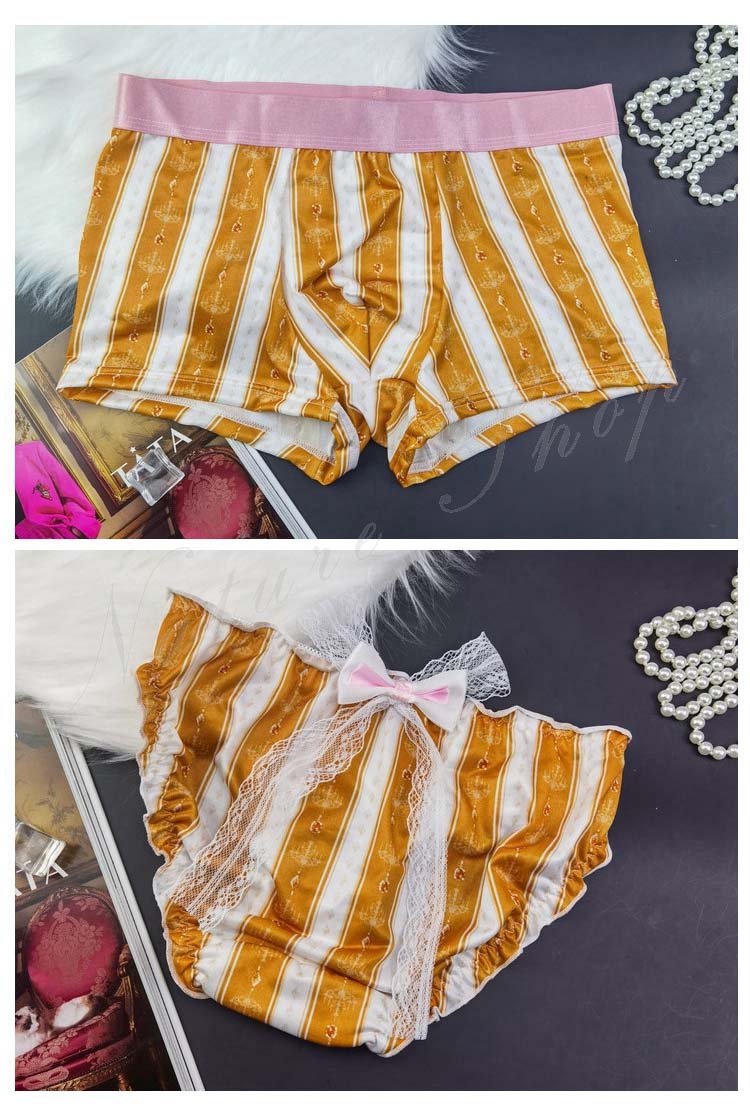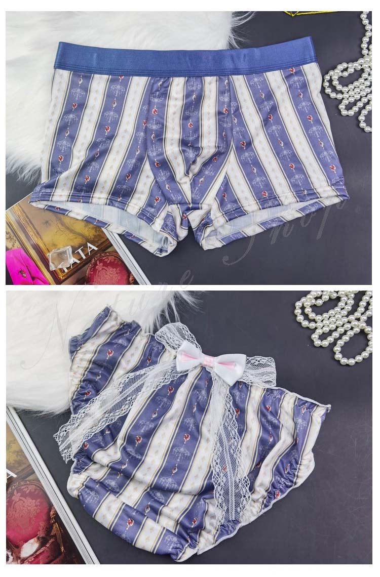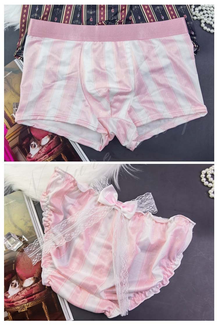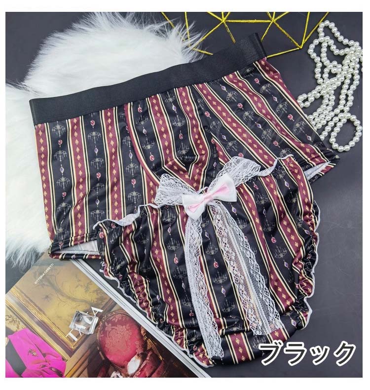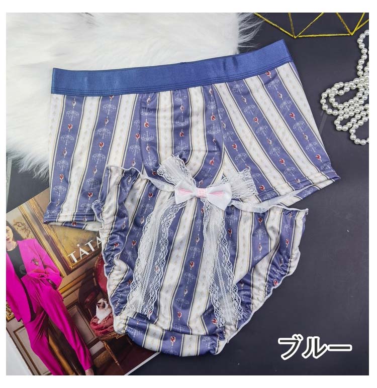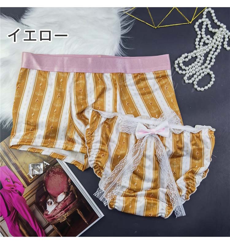 パンツ レディース メンズ 下着 セット ストライプ柄 男の子 女の子 リボン飾り レース 綿 ローウェスト 通気性良い ショーツ レース トランクス パンティー かわいい 可愛い