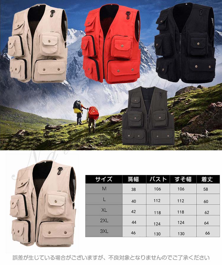 メンズ ベスト 春夏 アウトドア 大きいサイズ アウトウエア 撮影ベスト スポーツ 登山 徒歩 釣り ベスト 通気 多機能ベスト ポケット