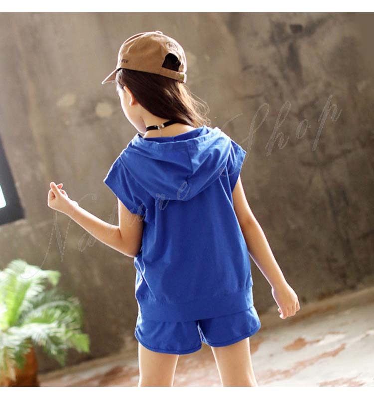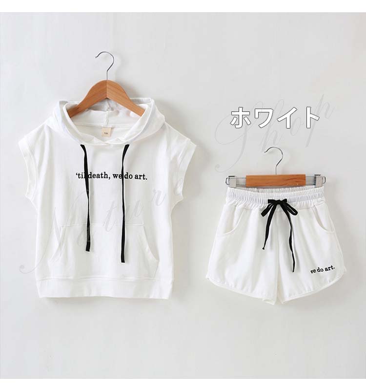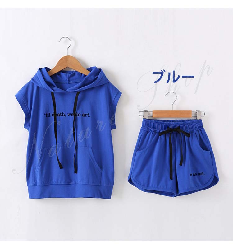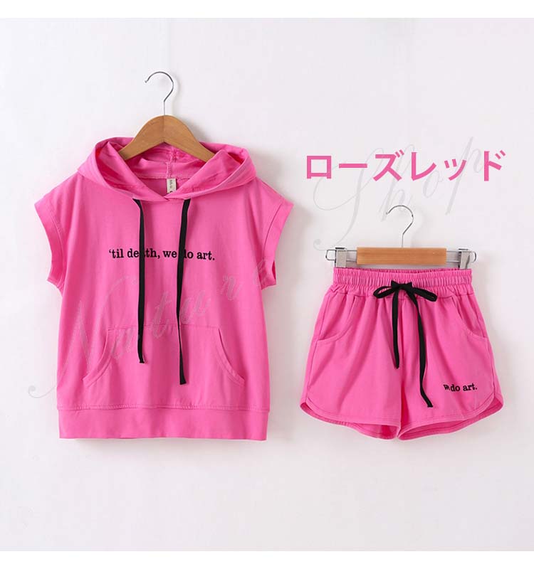 子ども服 子供服 女の子 セットアップ 夏 夏服 カジュアル ナチュラル パーかー 袖なし フード付き ノースリーブ 半ズボン 短パン ショートパンツ 無地 スポーツウェア