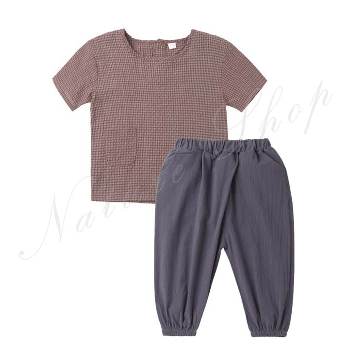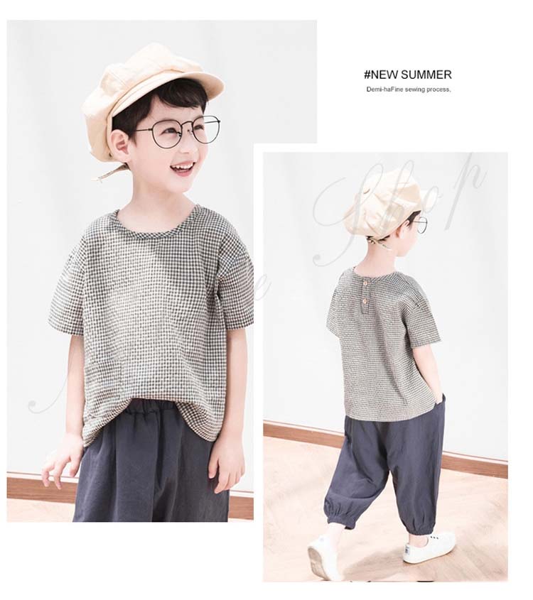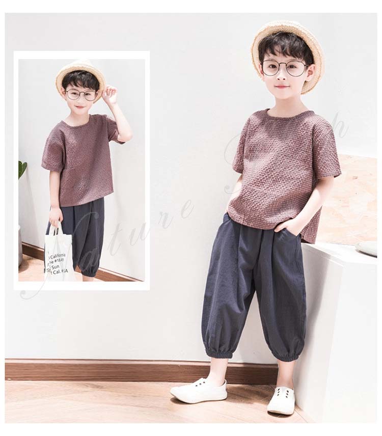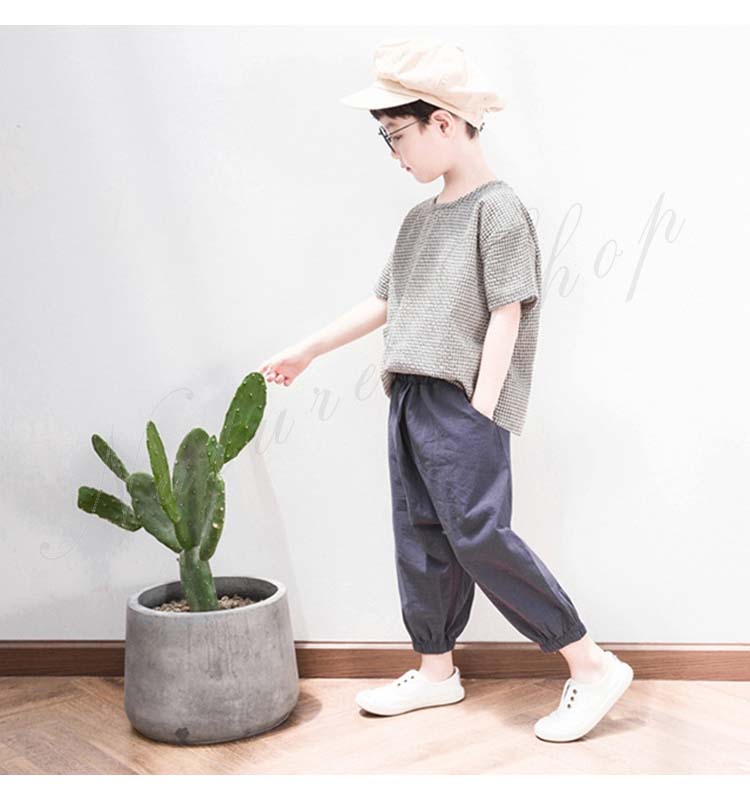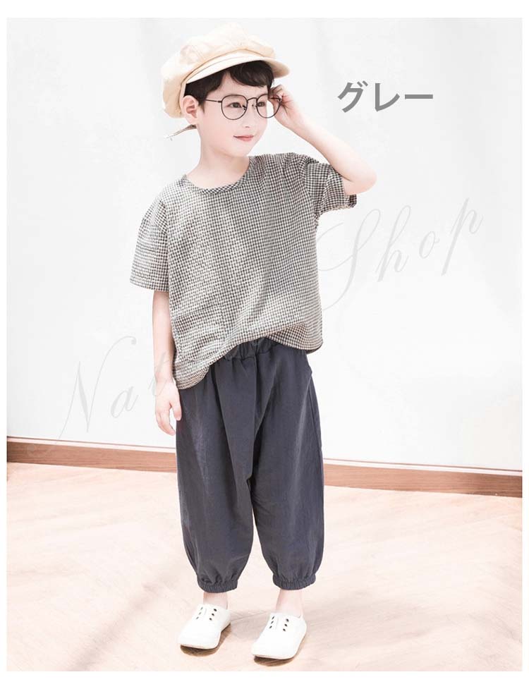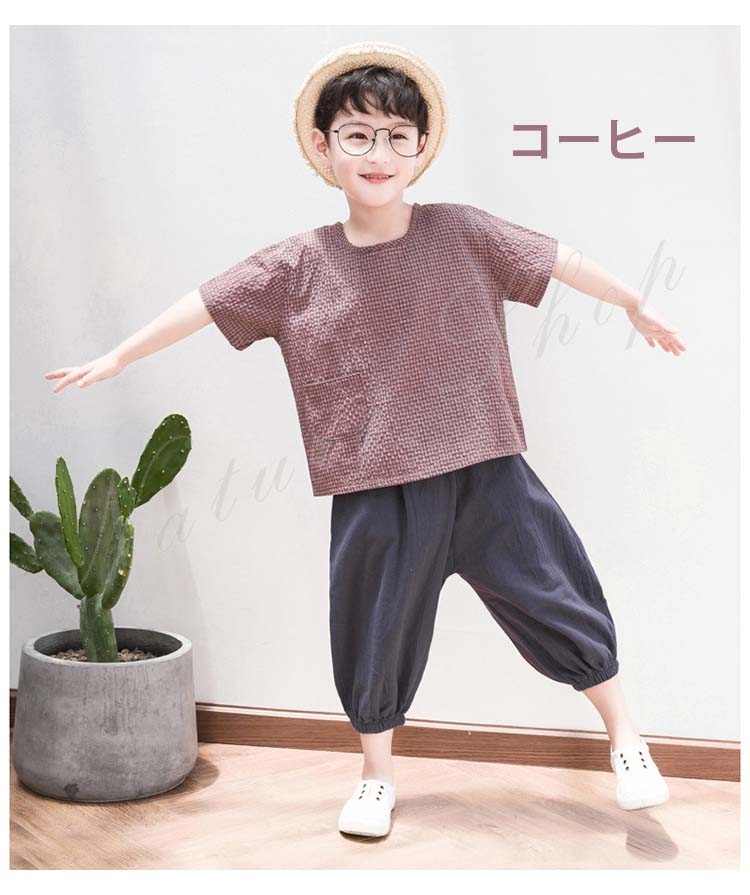 子供服 子ども服 男の子 セットアップ 夏服 夏 半袖 tシャツ ズボン 綿麻混 リネン 薄手 スクエアネック 長ズボン ゆったり サルエルパンツ ワイドパンツ 無地 シンプル