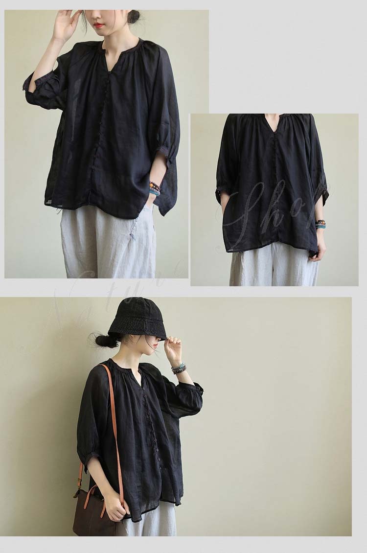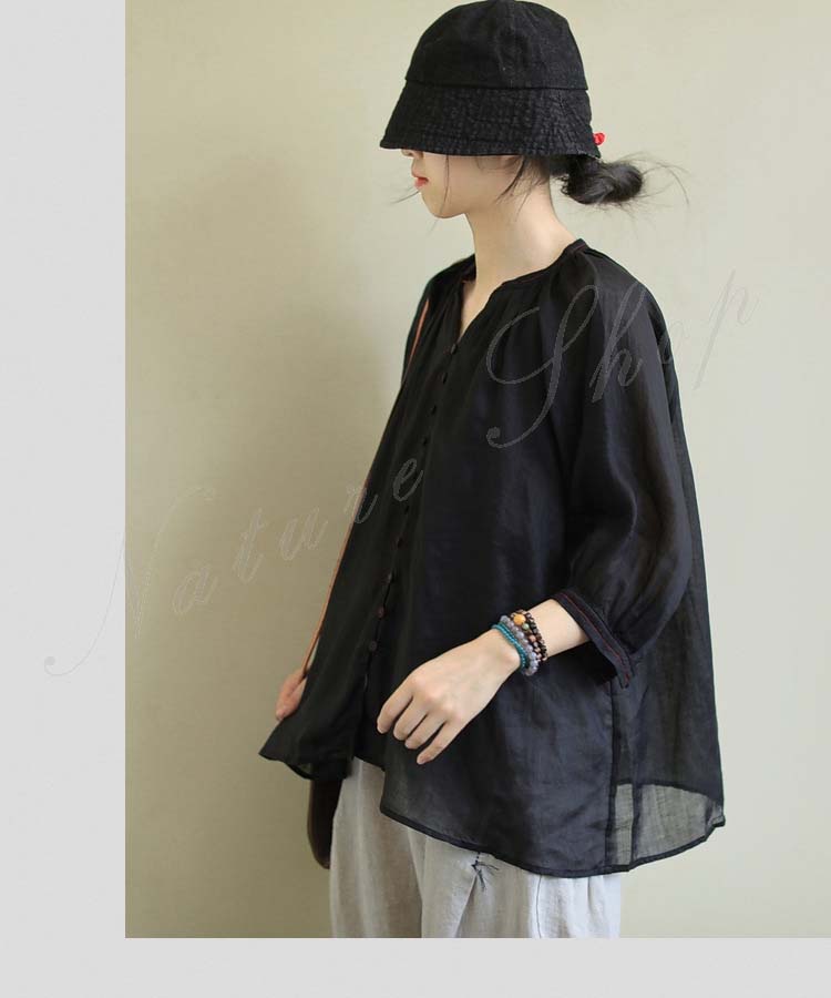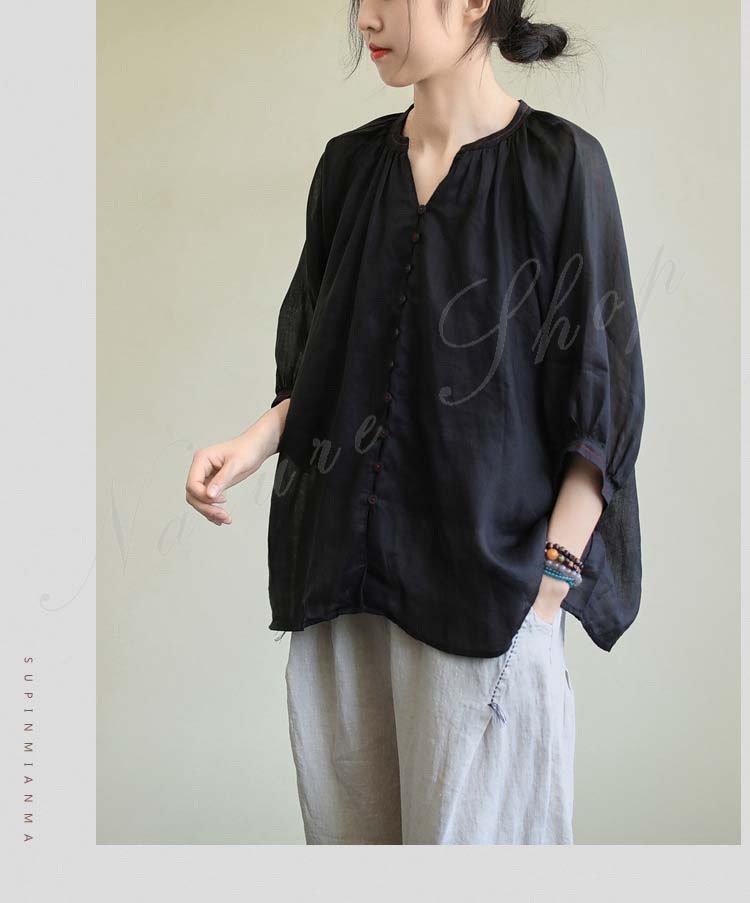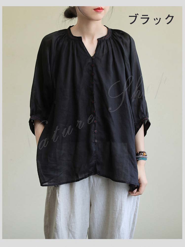 シアースリーブ ドッキングシャツ ボウタイシャツブラウス