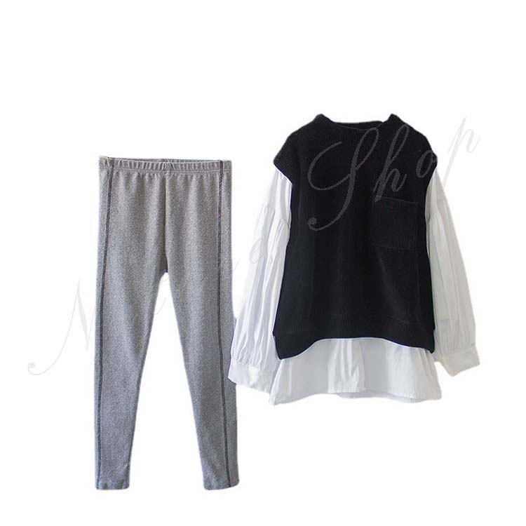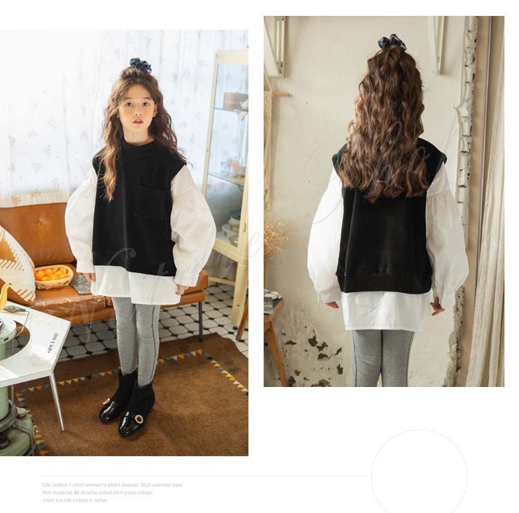 セットアップ レディース キッズ カジュアル 大きいサイズ おしゃれ アンサンブル 長袖 パーカー ブラウス 偽重ね着 長袖 レギンス 綿 ゆったり 着痩せ 体型カバー 可愛い