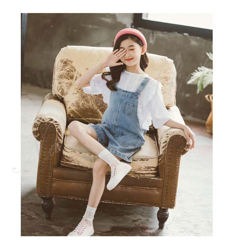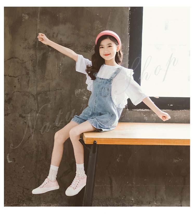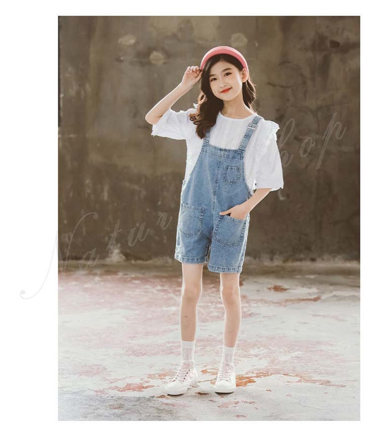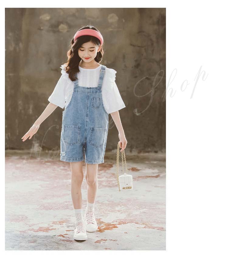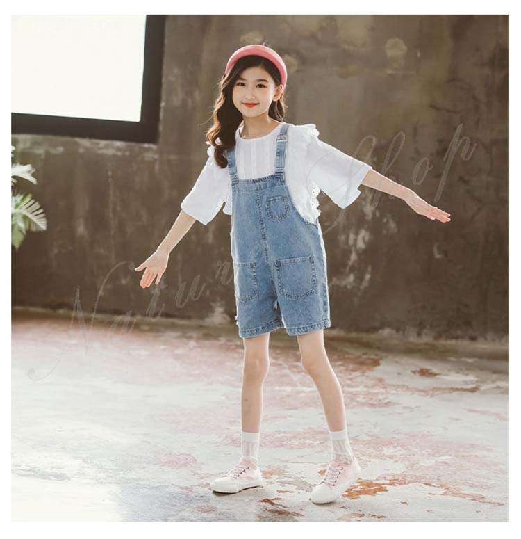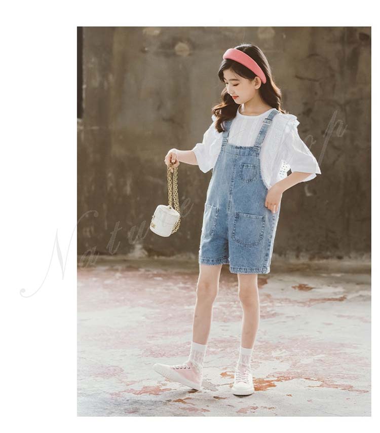子ども服 子供服 女の子 夏服 夏 カジュアル ナチュラル 半袖 ブラウス サスペンダー キッズ デニム パンツ サロペット おしゃれ 可愛い オーバーオール ショートパンツ