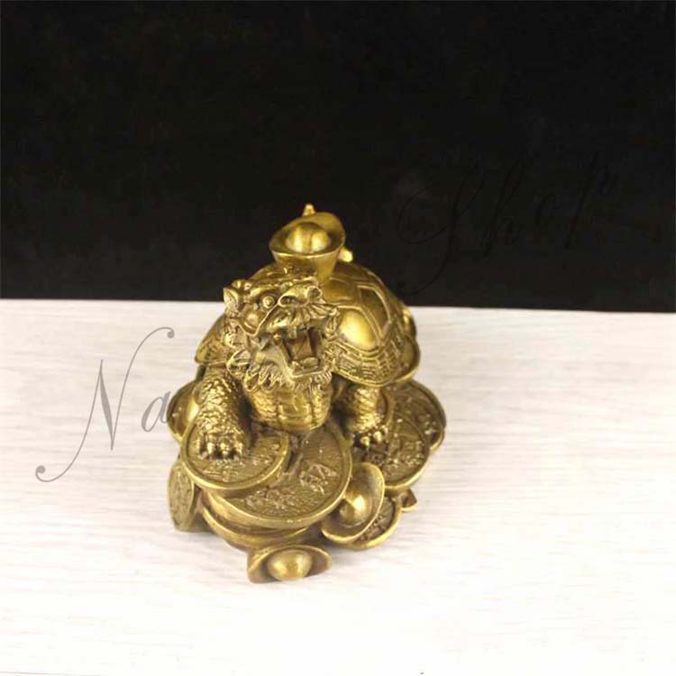 オフィスや料理店などのインテリアにも 招財 銅製元寶龍亀 風水 開運 ドラゴンタートル 置物 成功 財運 仕事運
